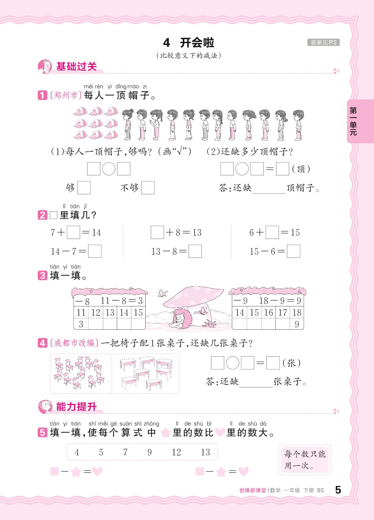 2024春下册一年级数学北师版 第一单元 加与减(一)——4. 开会啦