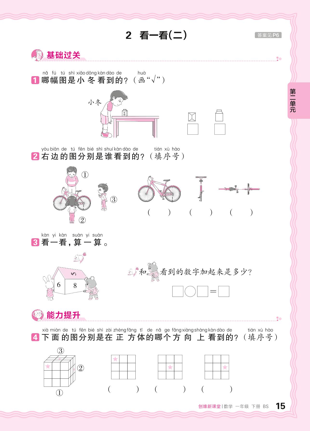 2024春下册一年级数学北师版 第二单元 观察物体——2. 看一看(二)