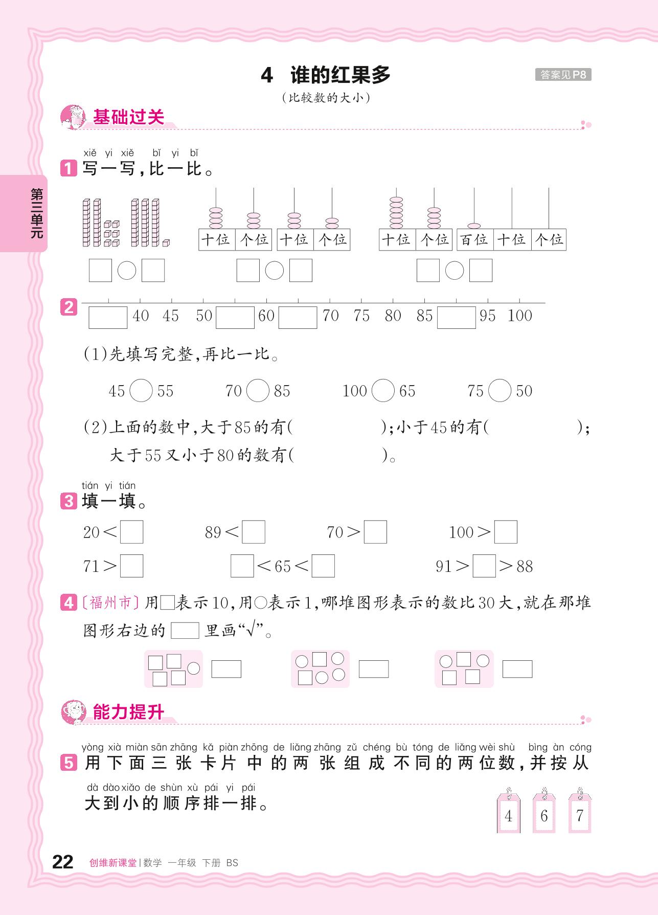 2024春下册一年级数学北师版 第三单元 生活中的数——4. 谁的红果多