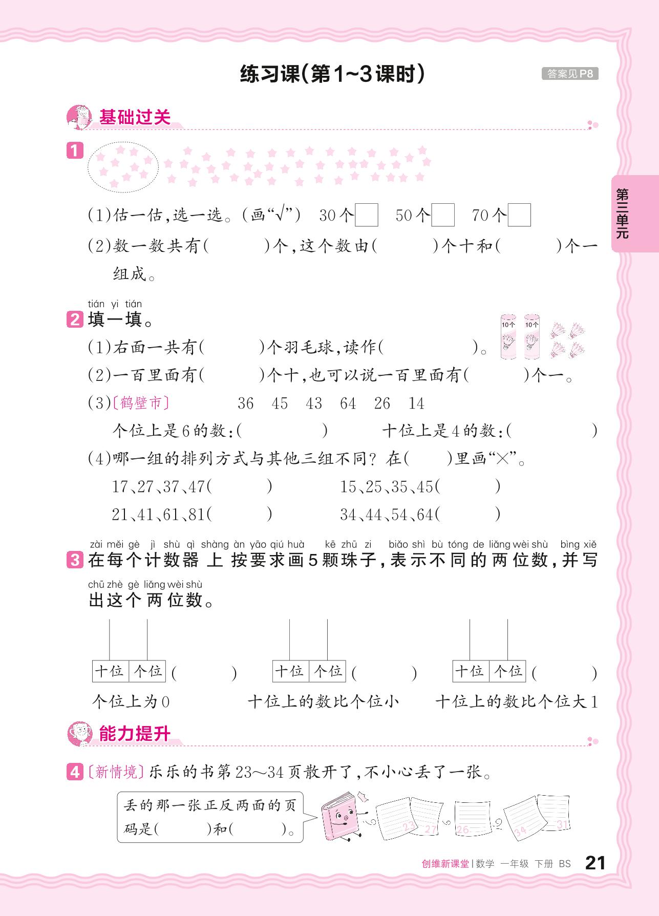 2024春下册一年级数学北师版 第三单元 生活中的数——数花生、数一数、数豆子练习课