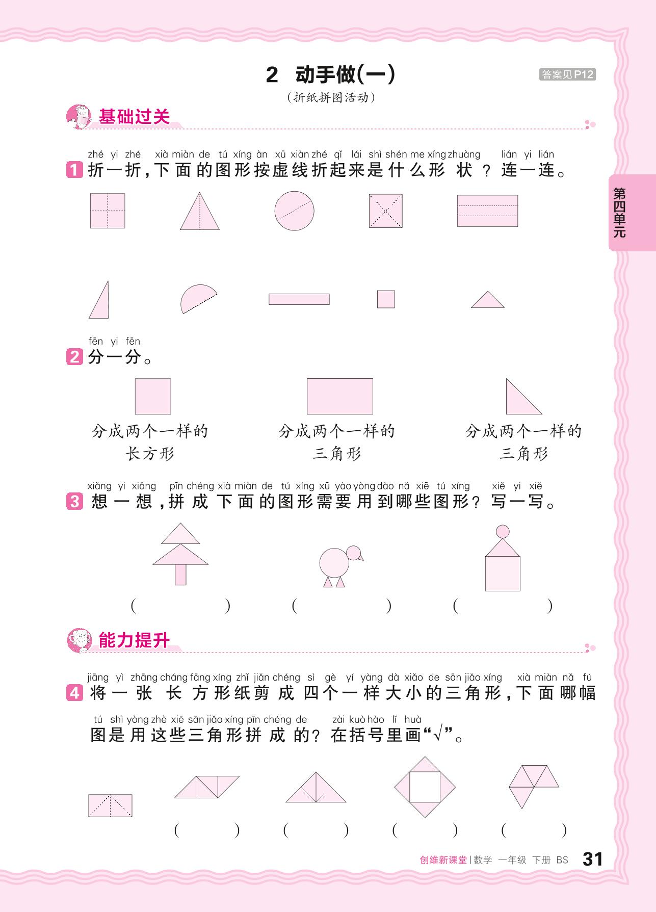 2024春下册一年级数学北师版 第四单元 有趣的图形——2. 动手做(一)