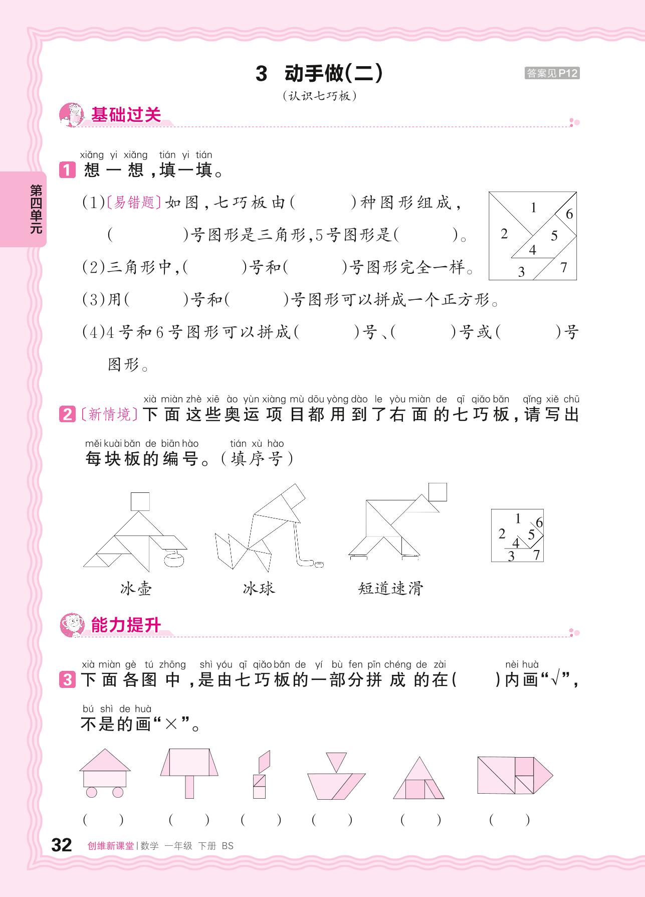 2024春下册一年级数学北师版 第四单元 有趣的图形——3. 动手做(二)