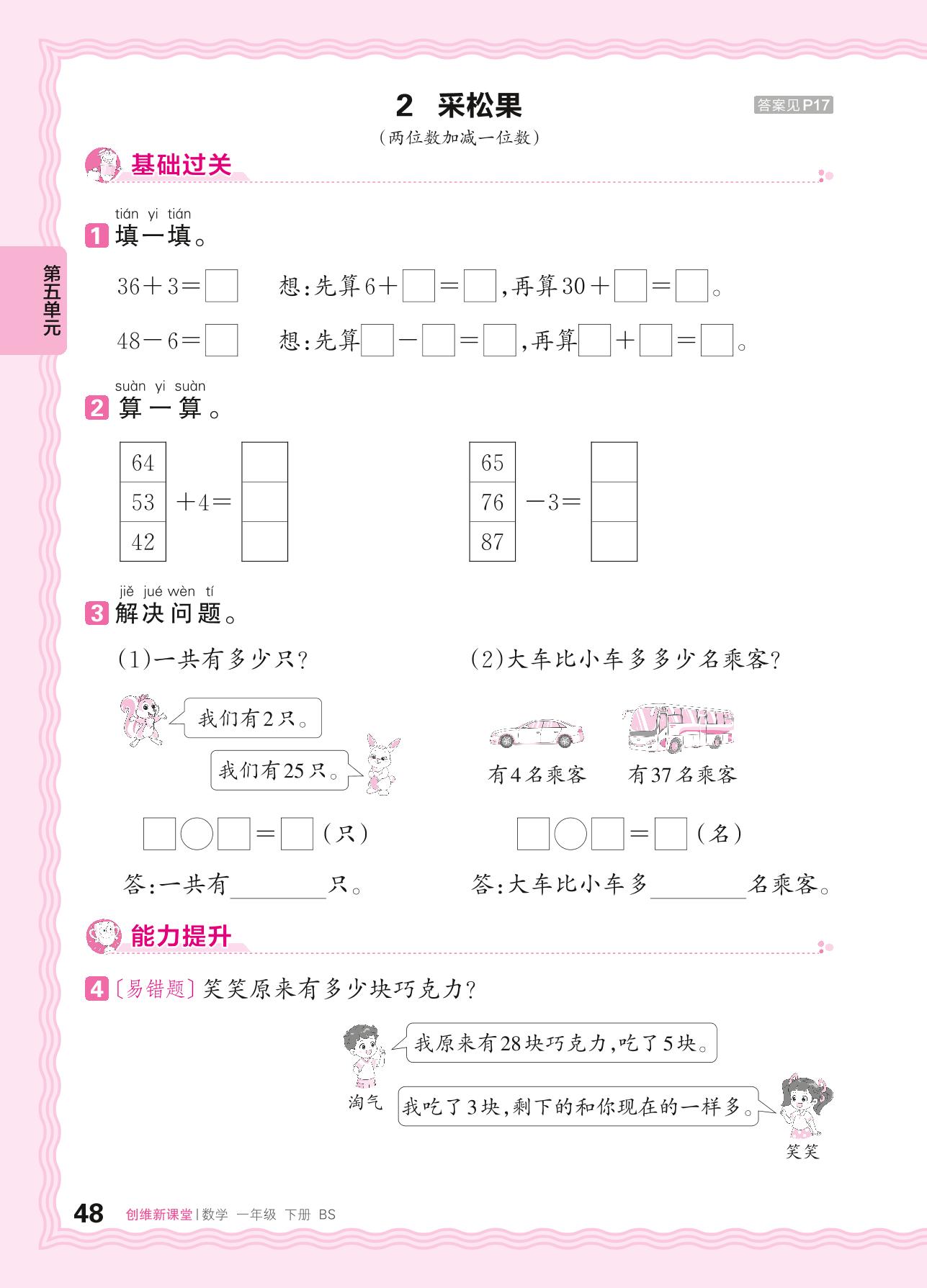 2024春下册一年级数学北师版 第五单元 加与减(二)——2. 采松果