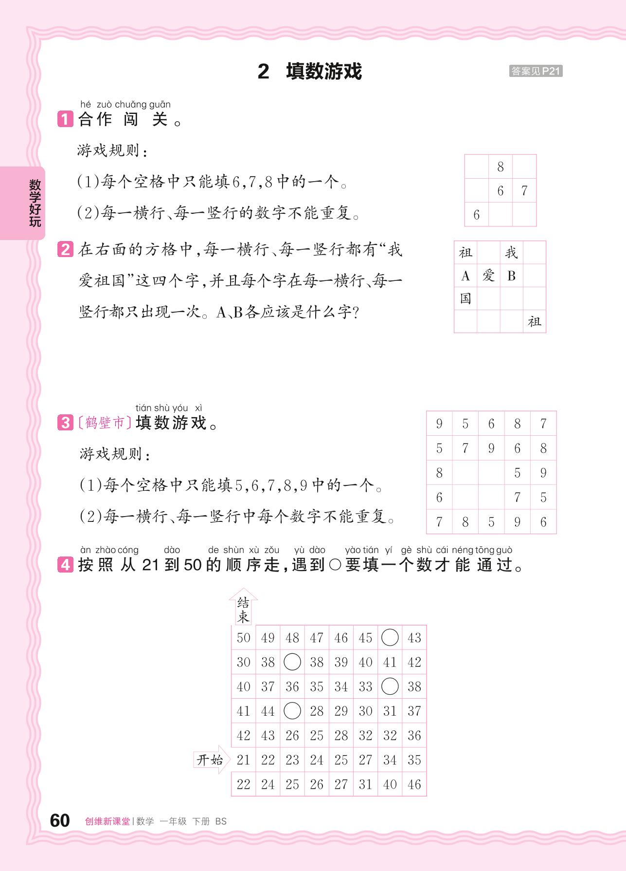 2024春下册一年级数学北师版 数学好玩——2. 填数游戏