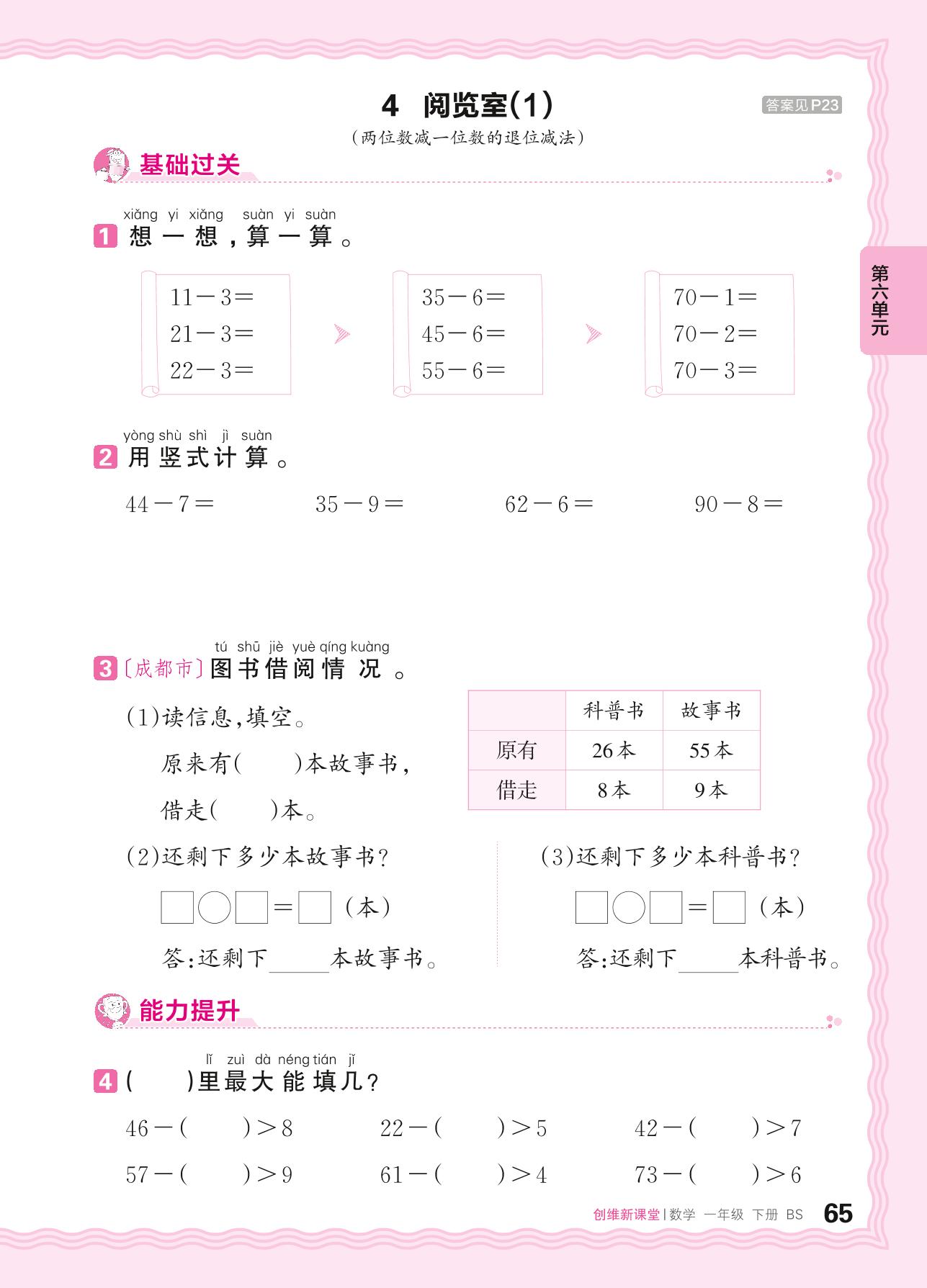 2024春下册一年级数学北师版 第六单元 加与减(三)——4. 阅览室(1)