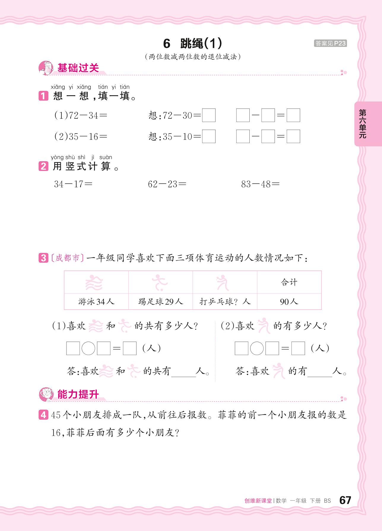 2024春下册一年级数学北师版 第六单元 加与减(三)——6. 跳绳(1)