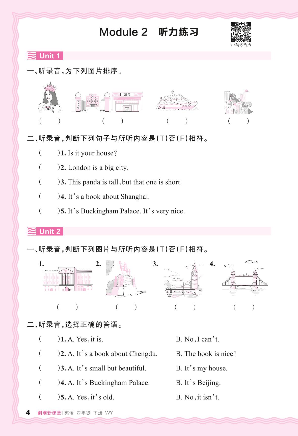 2024春下册四年级英语外研版 Module 2 听力练习