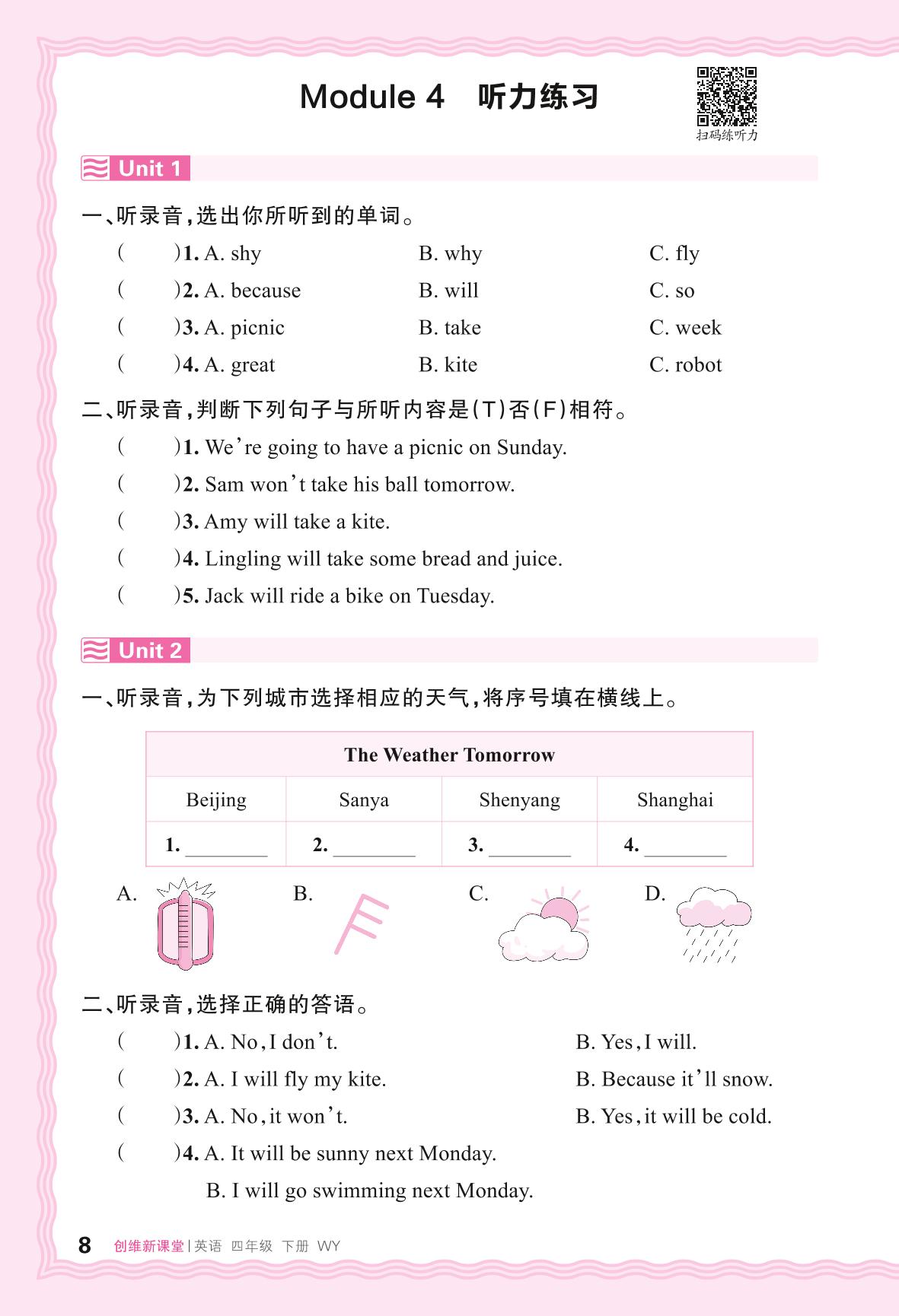 2024春下册四年级英语外研版 Module 4 听力练习