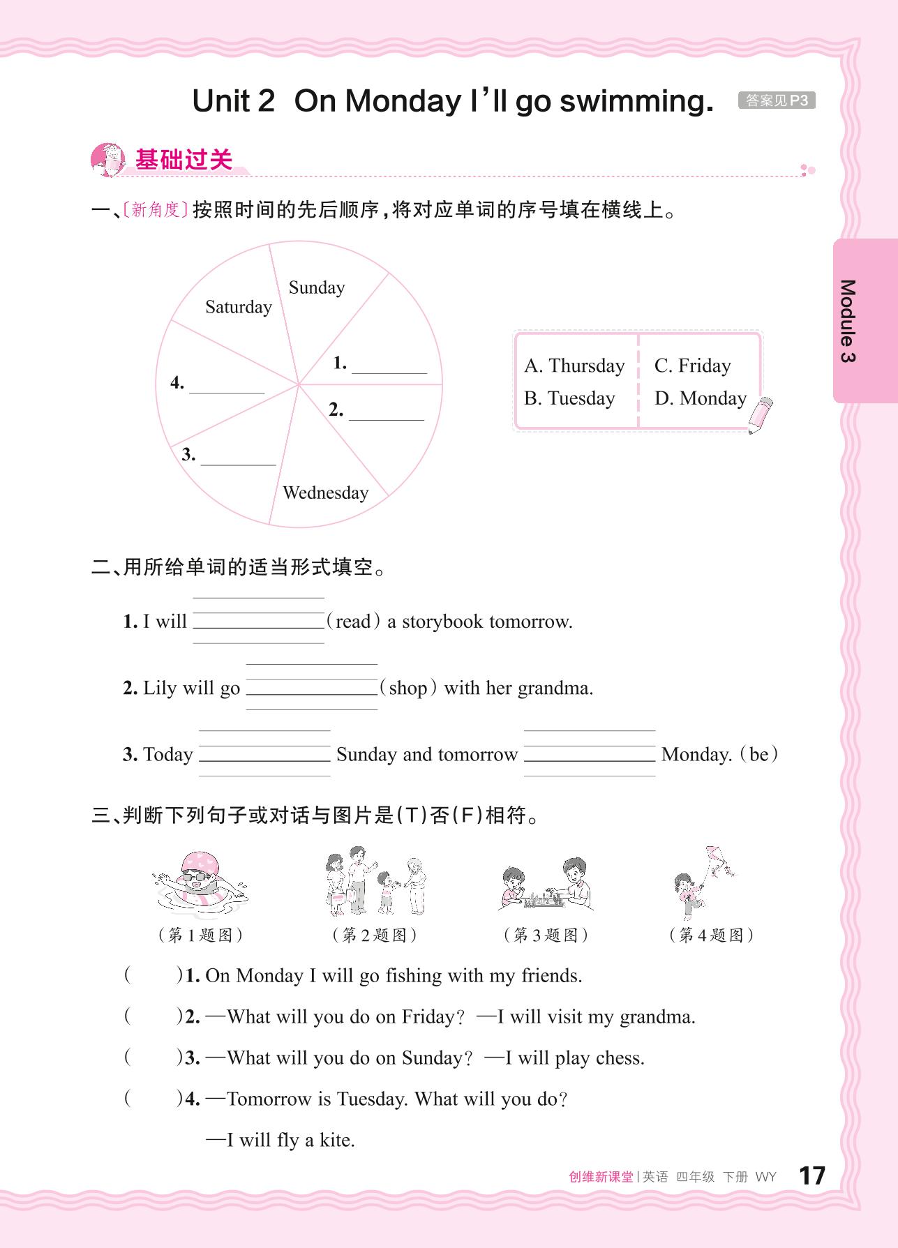 2024春下册四年级英语外研版 Module 3—Unit 2 On Monday I'll go swimming.