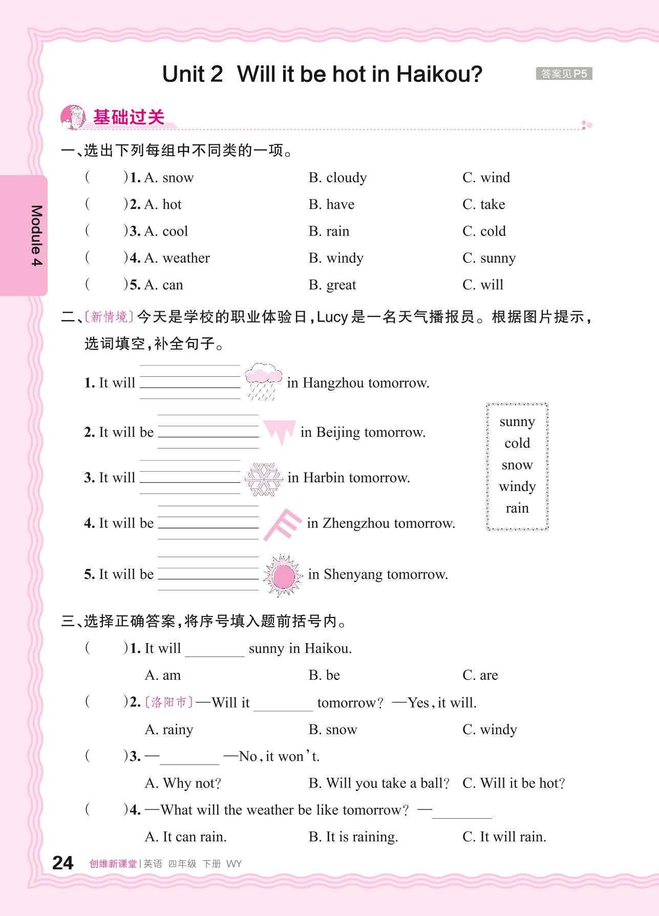 2024春下册四年级英语外研版 Module 4—Unit 2 Will it be hot in Haikou?