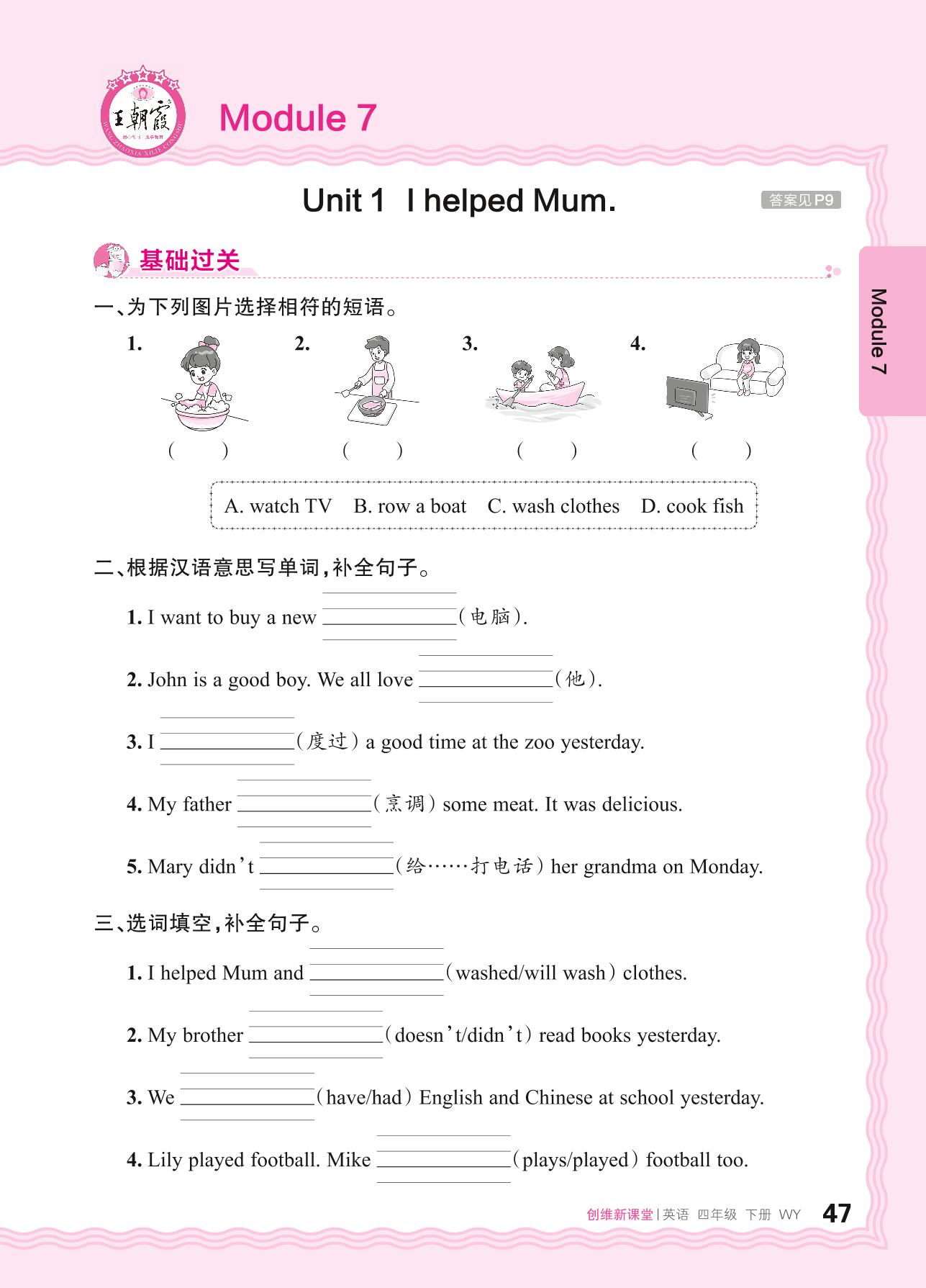 2024春下册四年级英语外研版 Module 7—Unit 1 I helped Mum.