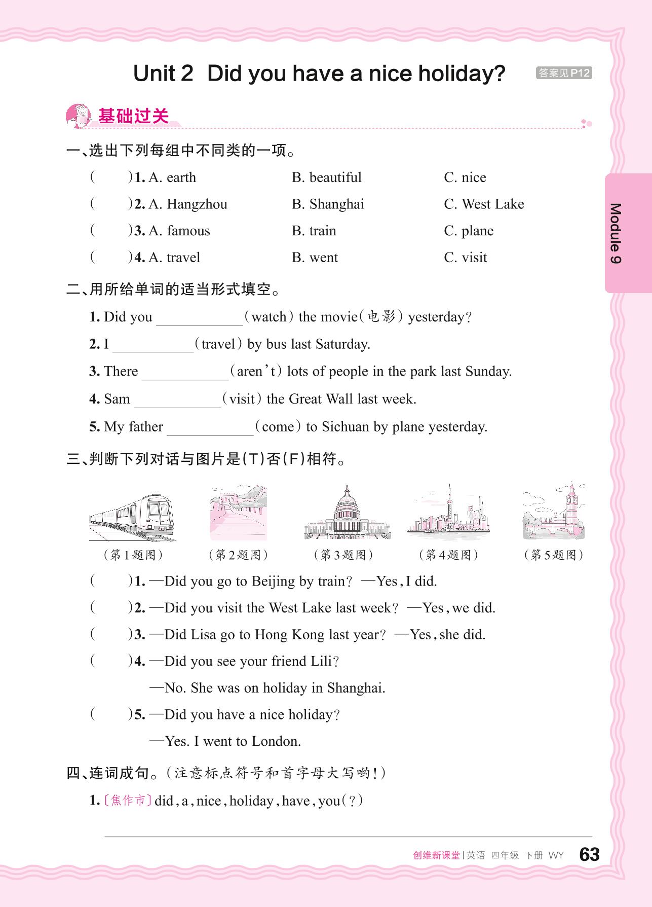 2024春下册四年级英语外研版 Module 9—Unit 1 Did you have a nice holiday?