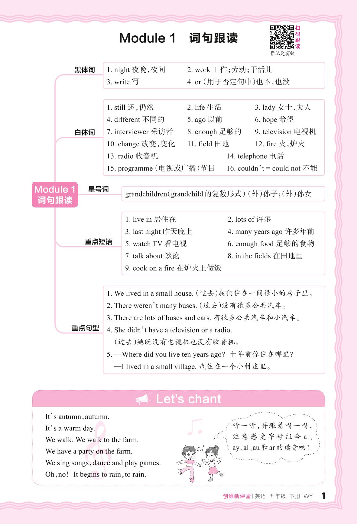 2024春下册五年级英语外研版 Module 1 词句跟读