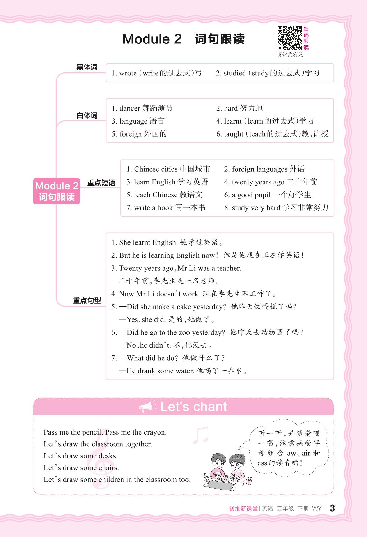 2024春下册五年级英语外研版 Module 2 词句跟读