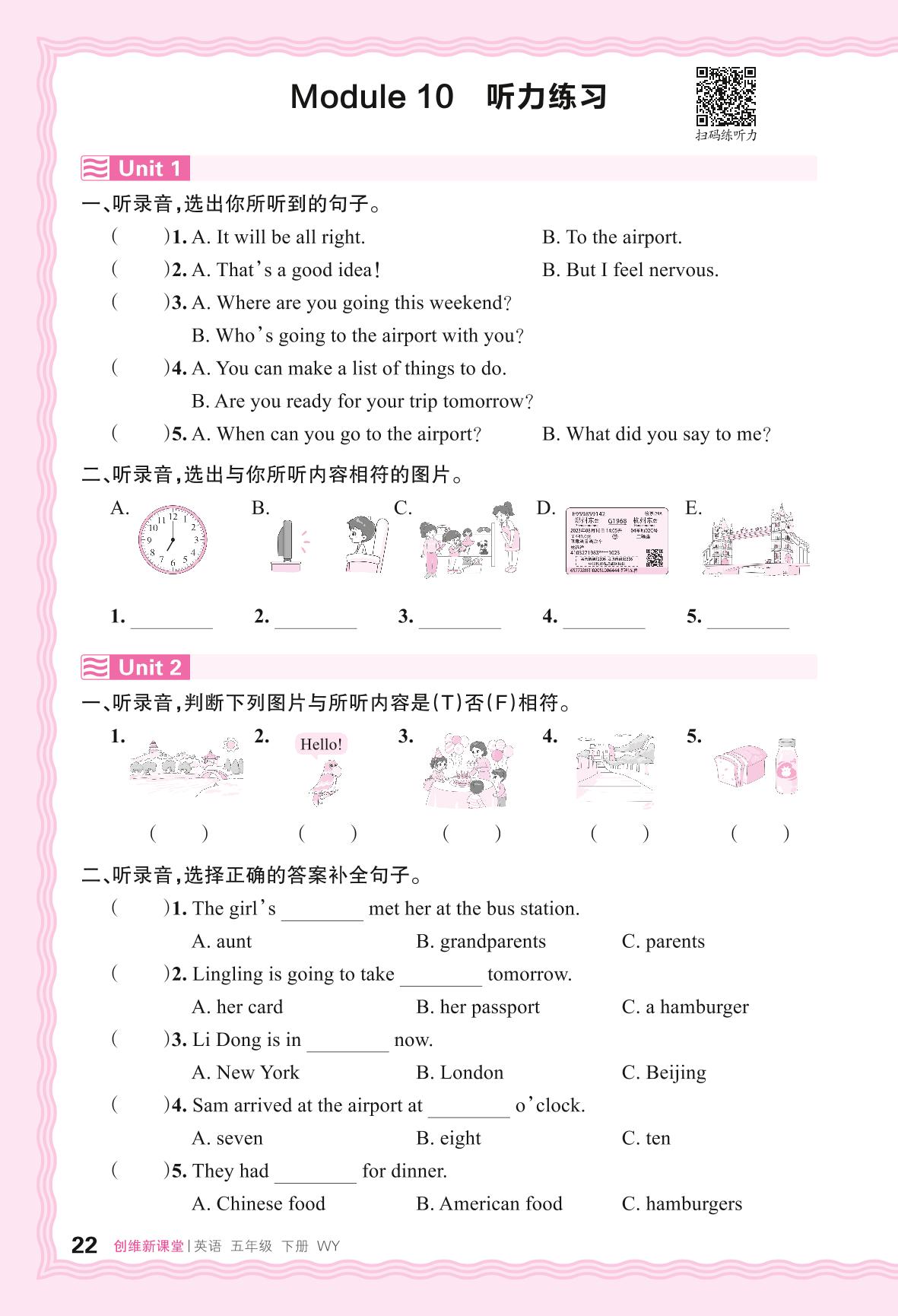 2024春下册五年级英语外研版 Module 10 听力练习