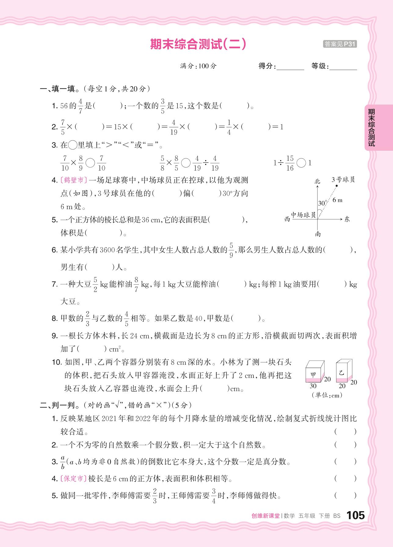 五年级数学北师版下册期末卷