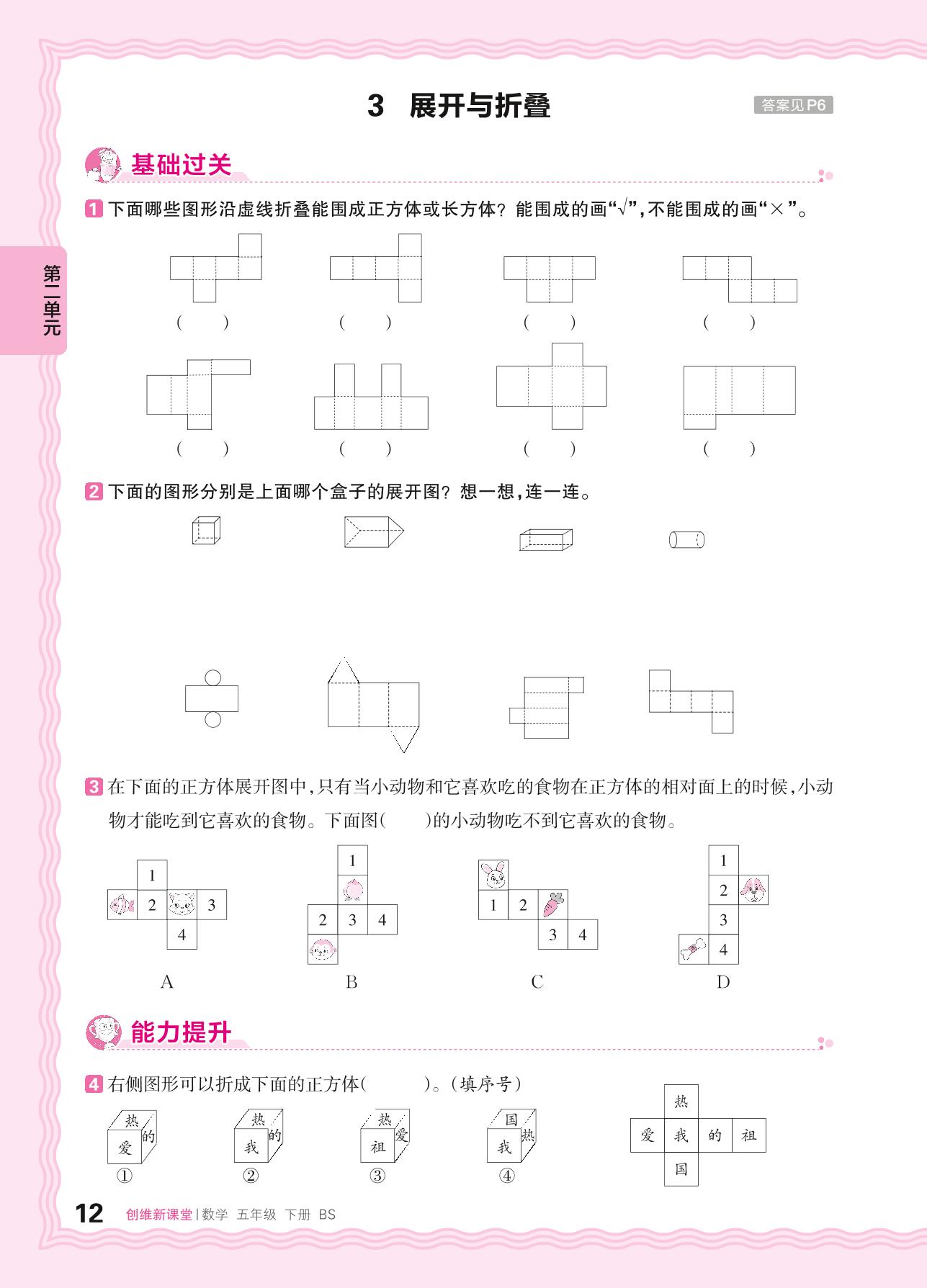 2024春下册五年级数学北师版 第二单元 长方体(一)——3. 展开与折叠