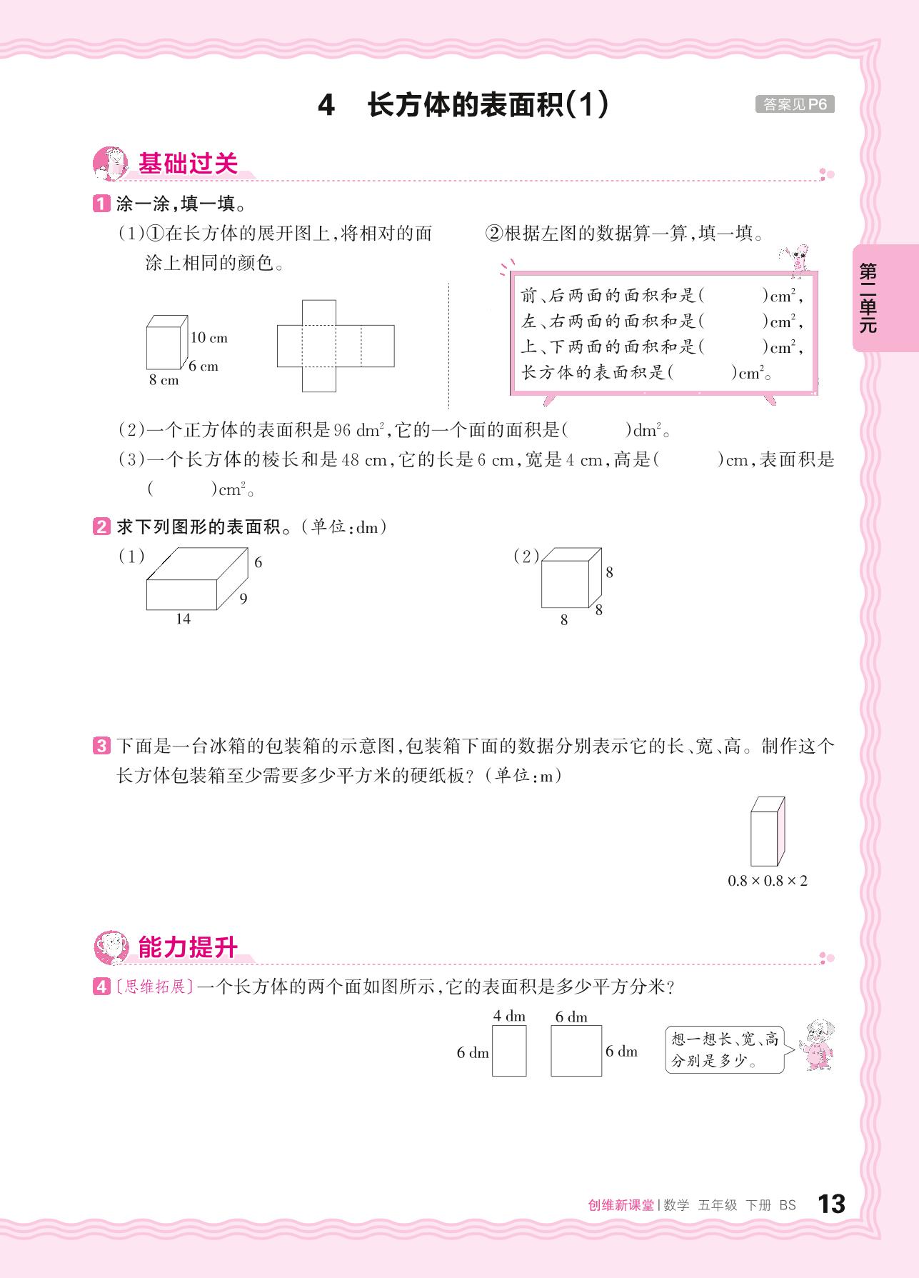 2024春下册五年级数学北师版 第二单元 长方体(一)——4. 长方体的表面积(1)