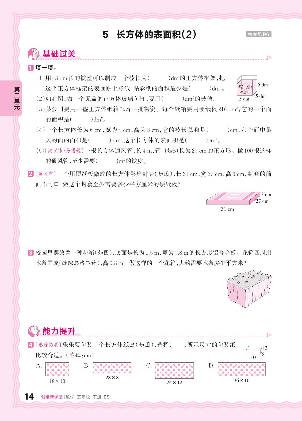 2024春下册五年级数学北师版 第二单元 长方体(一)——5. 长方体的表面积(2)
