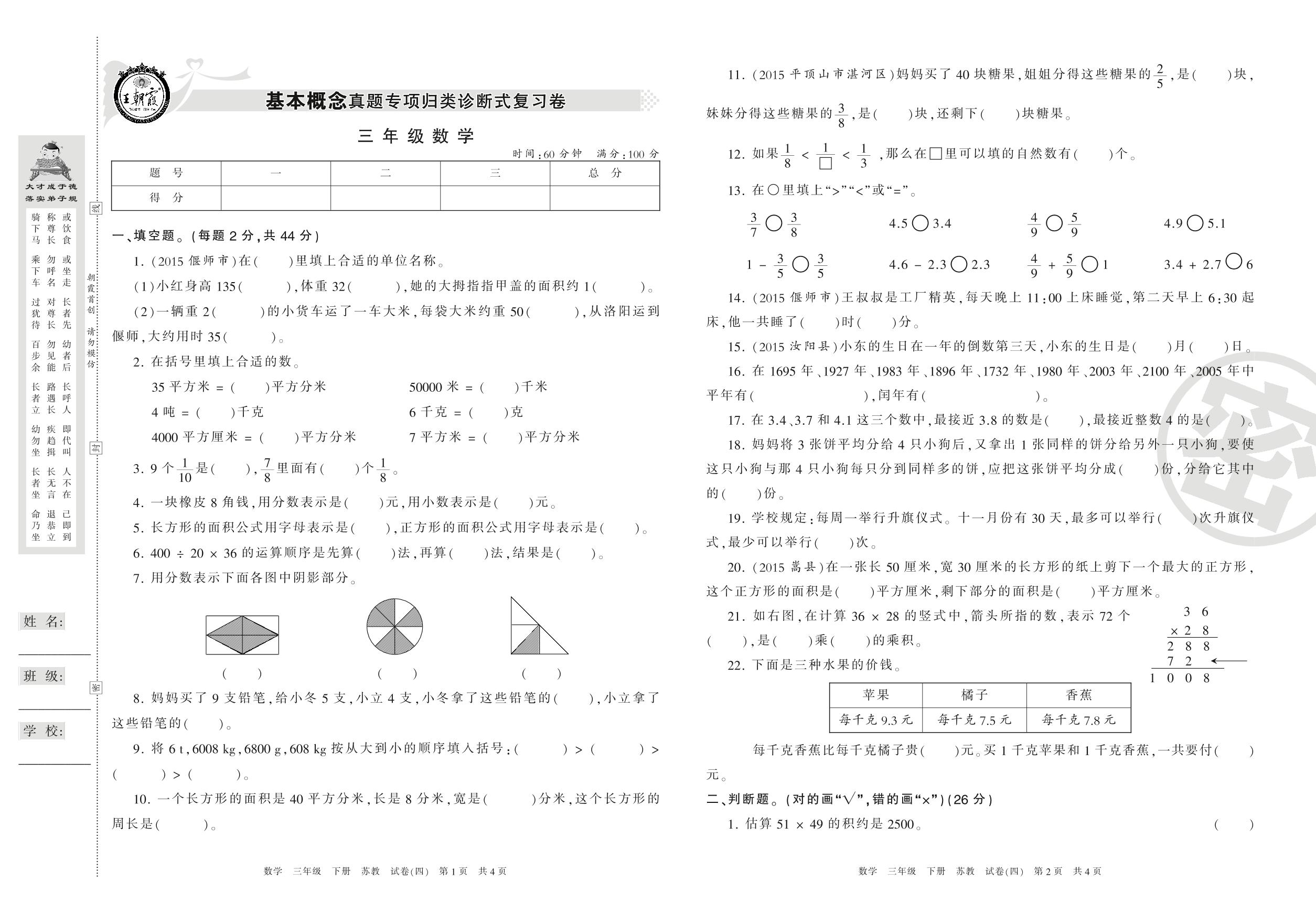 王朝霞期末专项卷三年级下册数学(苏教版)_R210804102119【4】