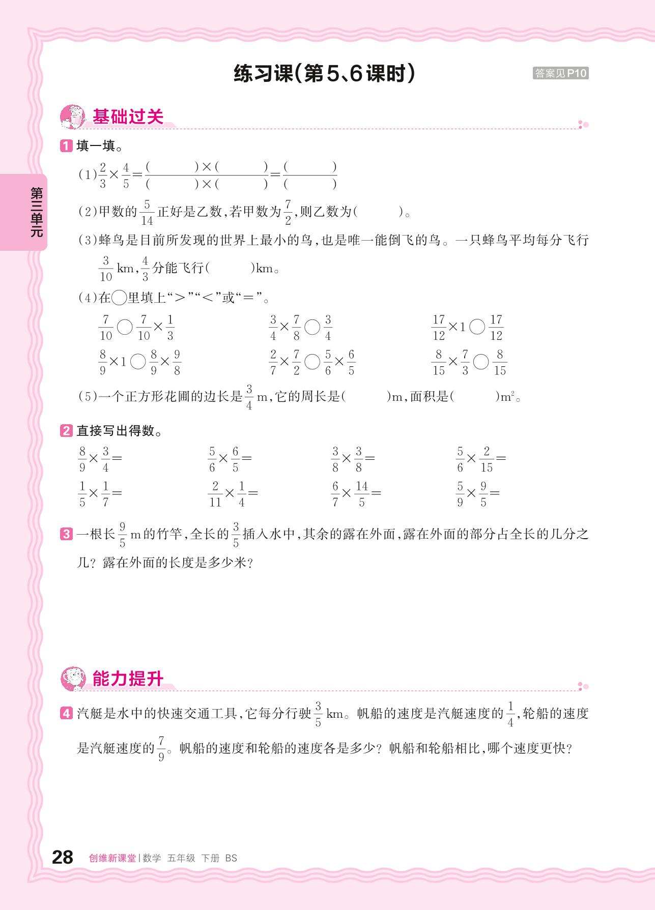 2024春下册五年级数学北师版 第三单元 分数乘法——分数乘法(三)练习课
