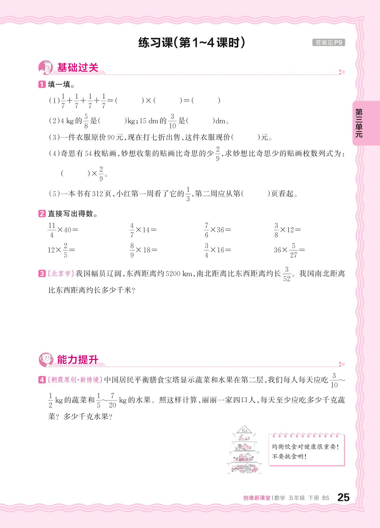 2024春下册五年级数学北师版 第三单元 分数乘法——分数乘法(一)、分数乘法(二)练习课