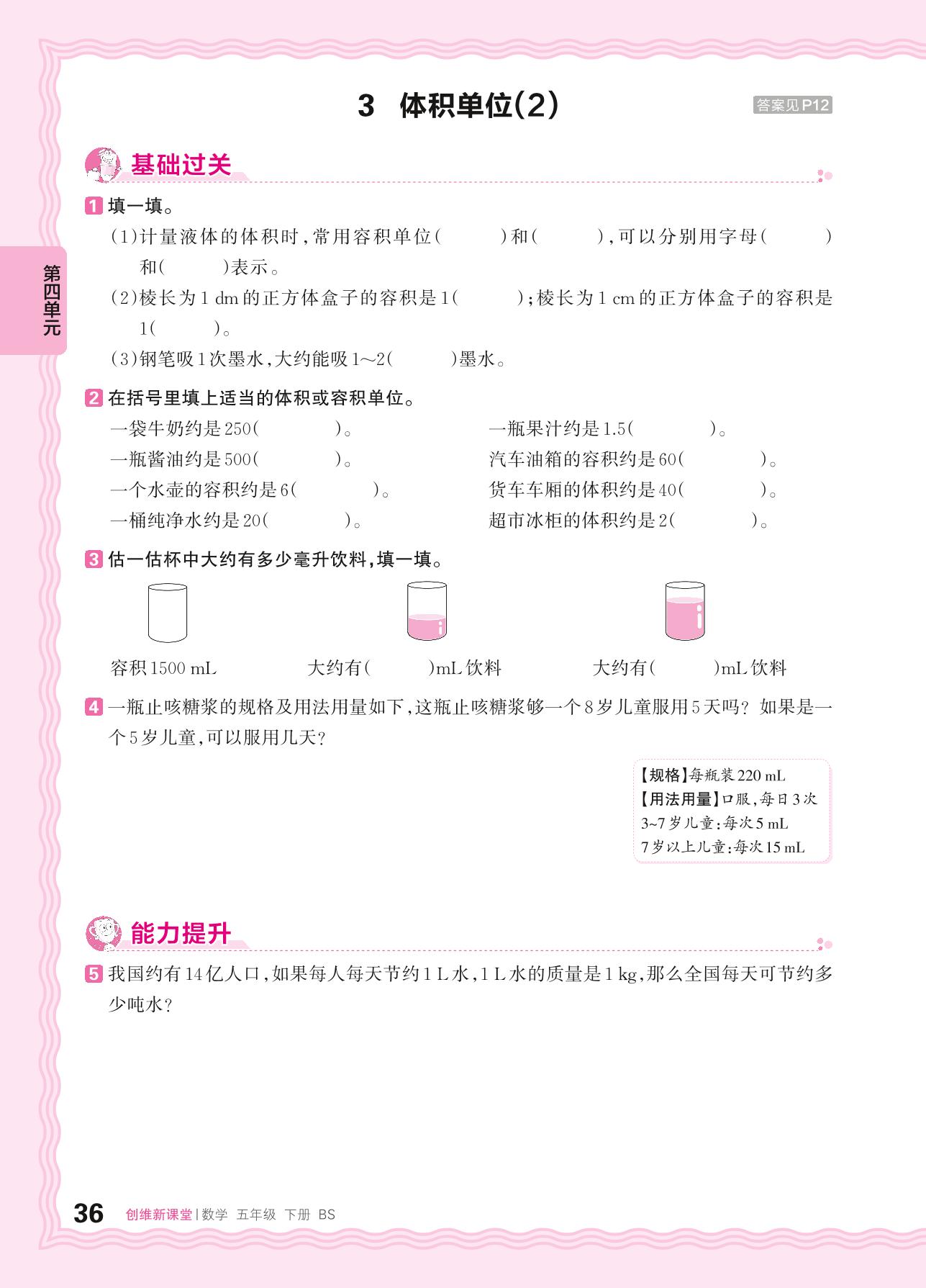 2024春下册五年级数学北师版 第四单元 长方体(二)——3. 体积单位(2)
