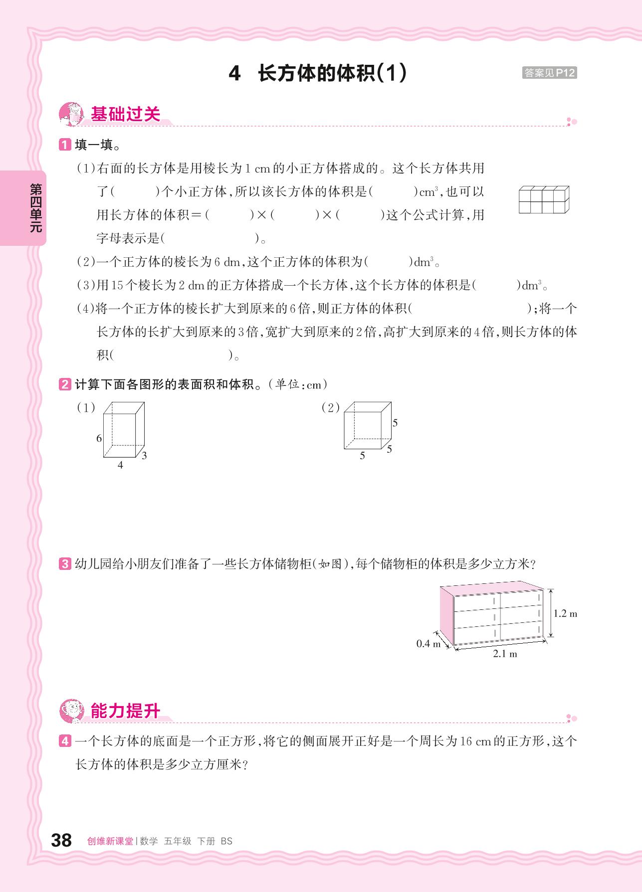 2024春下册五年级数学北师版 第四单元 长方体(二)——4. 长方体的体积(1)
