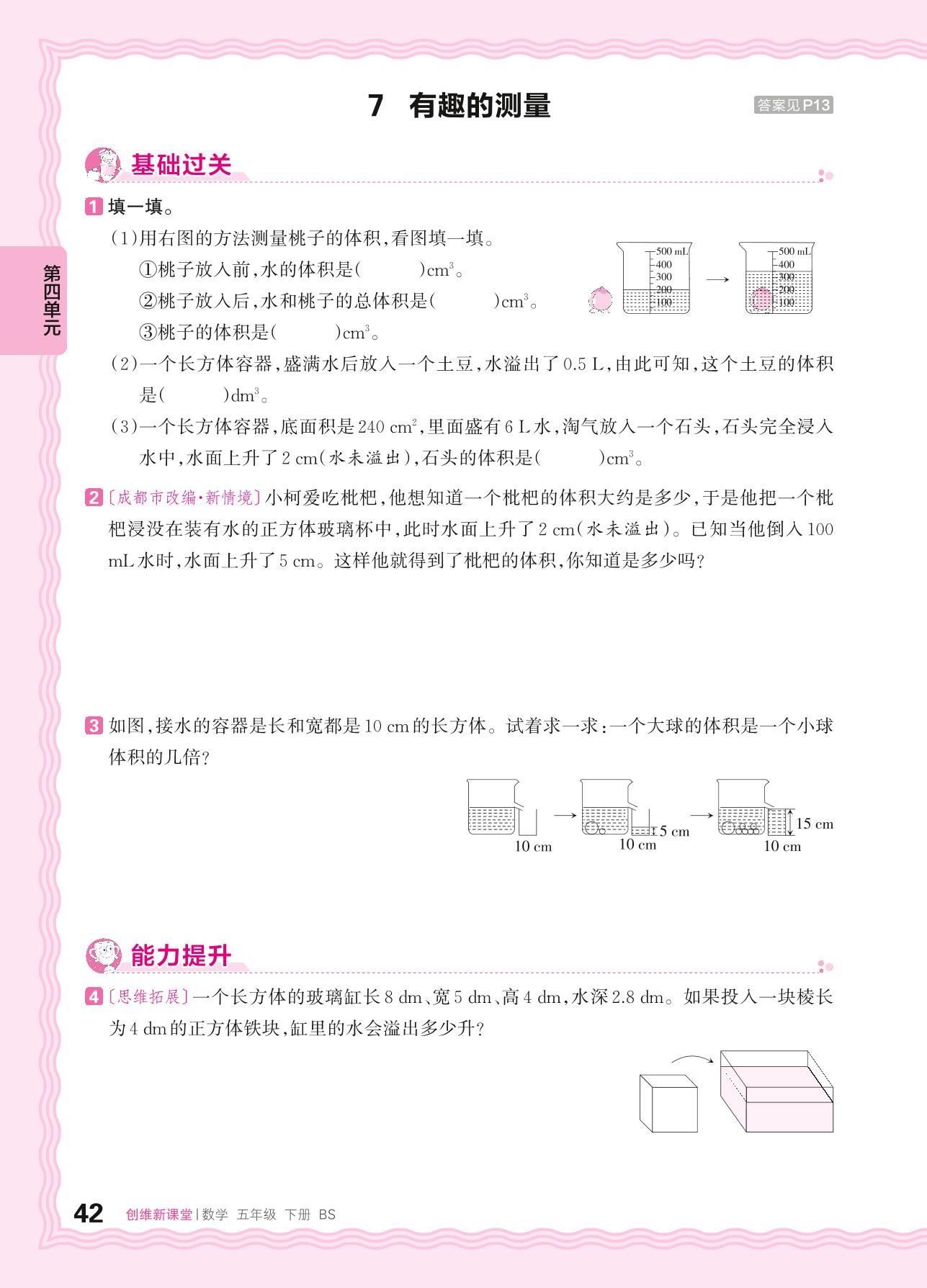 2024春下册五年级数学北师版 第四单元 长方体(二)——7. 有趣的测量