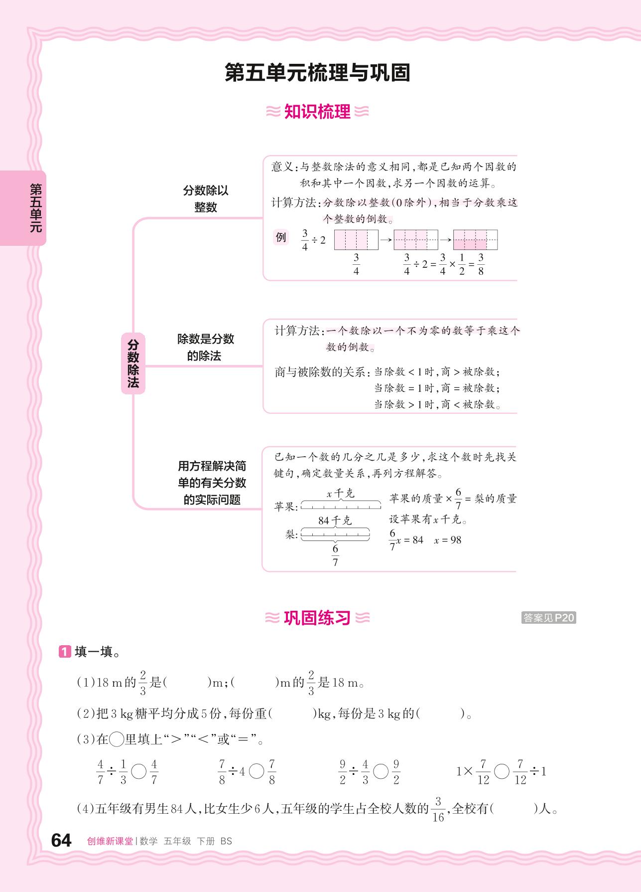 2024春下册五年级数学北师版 第五单元梳理与巩固