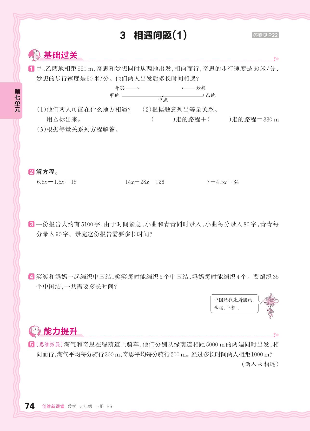 2024春下册五年级数学北师版 第七单元 用方程解决问题——3. 相遇问题(1)