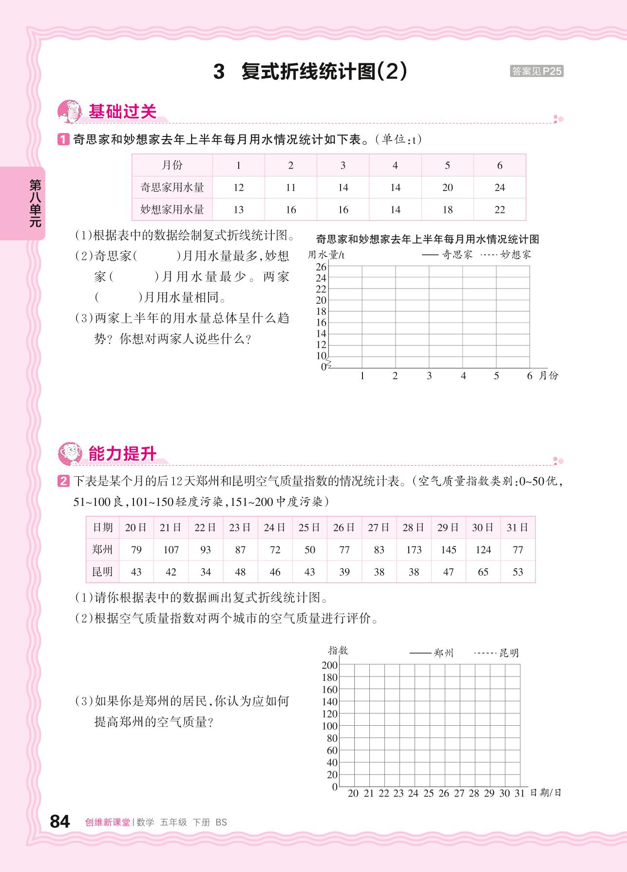 2024春下册五年级数学北师版 第八单元 数据的表示和分析——3. 复式折线统计图(2)