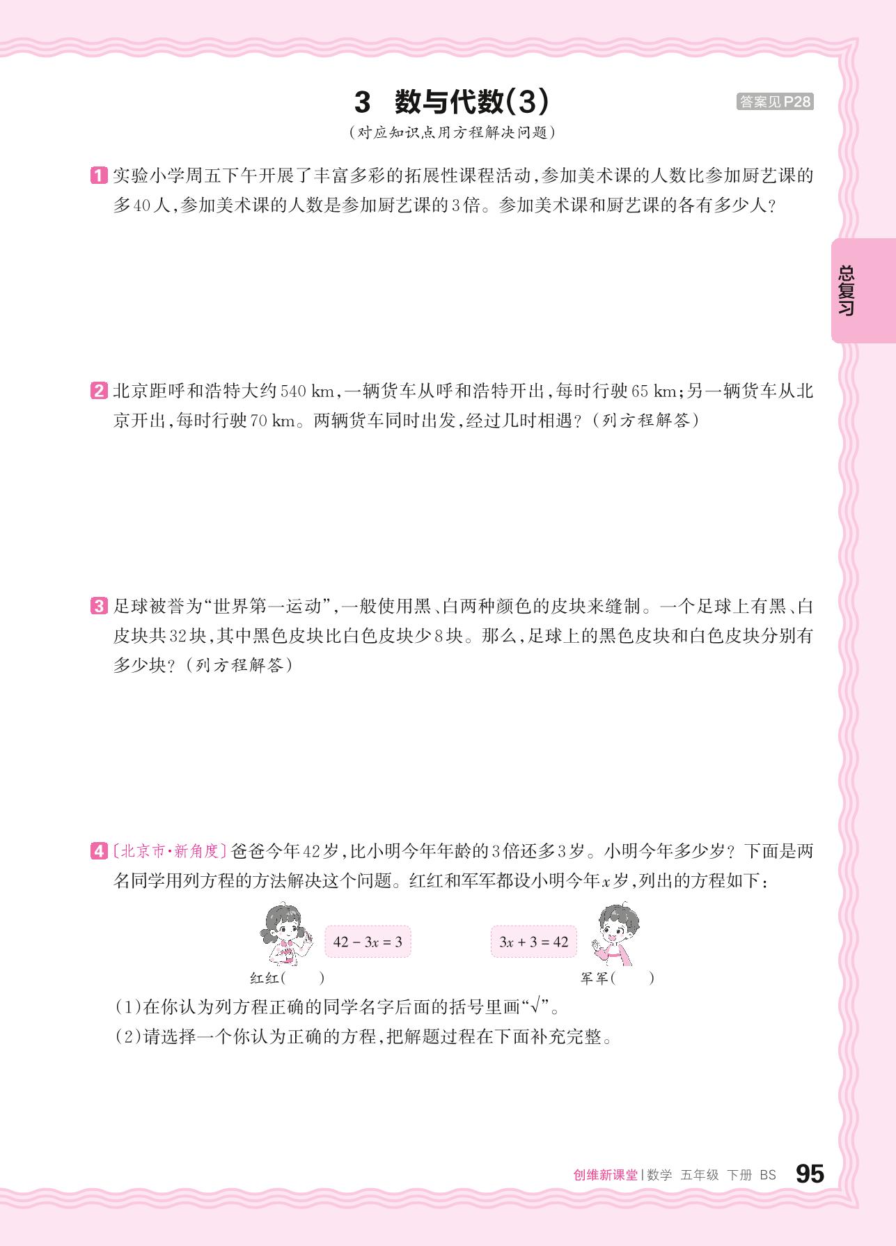 2024春下册五年级数学北师版 总复习——3. 数与代数(3)