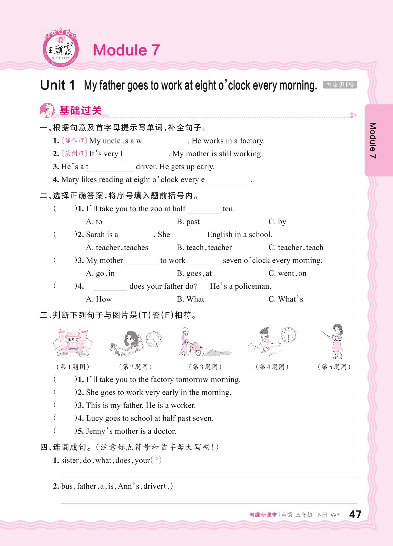 2024春下册五年级英语外研版 Module 7—Unit 1 My father goes to work at eight o'clock every morning.