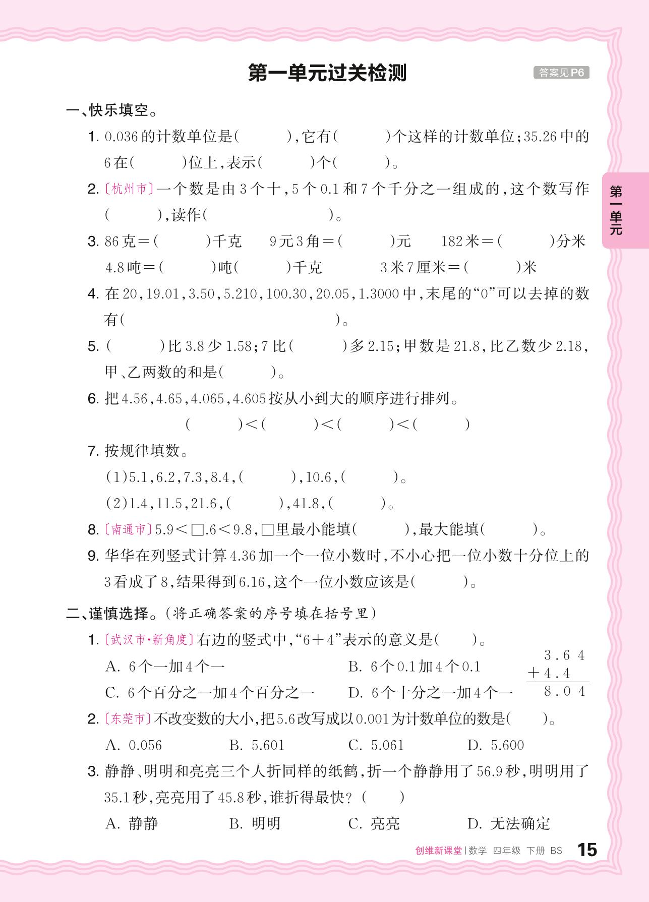 四年级数学北师版下册单元卷
