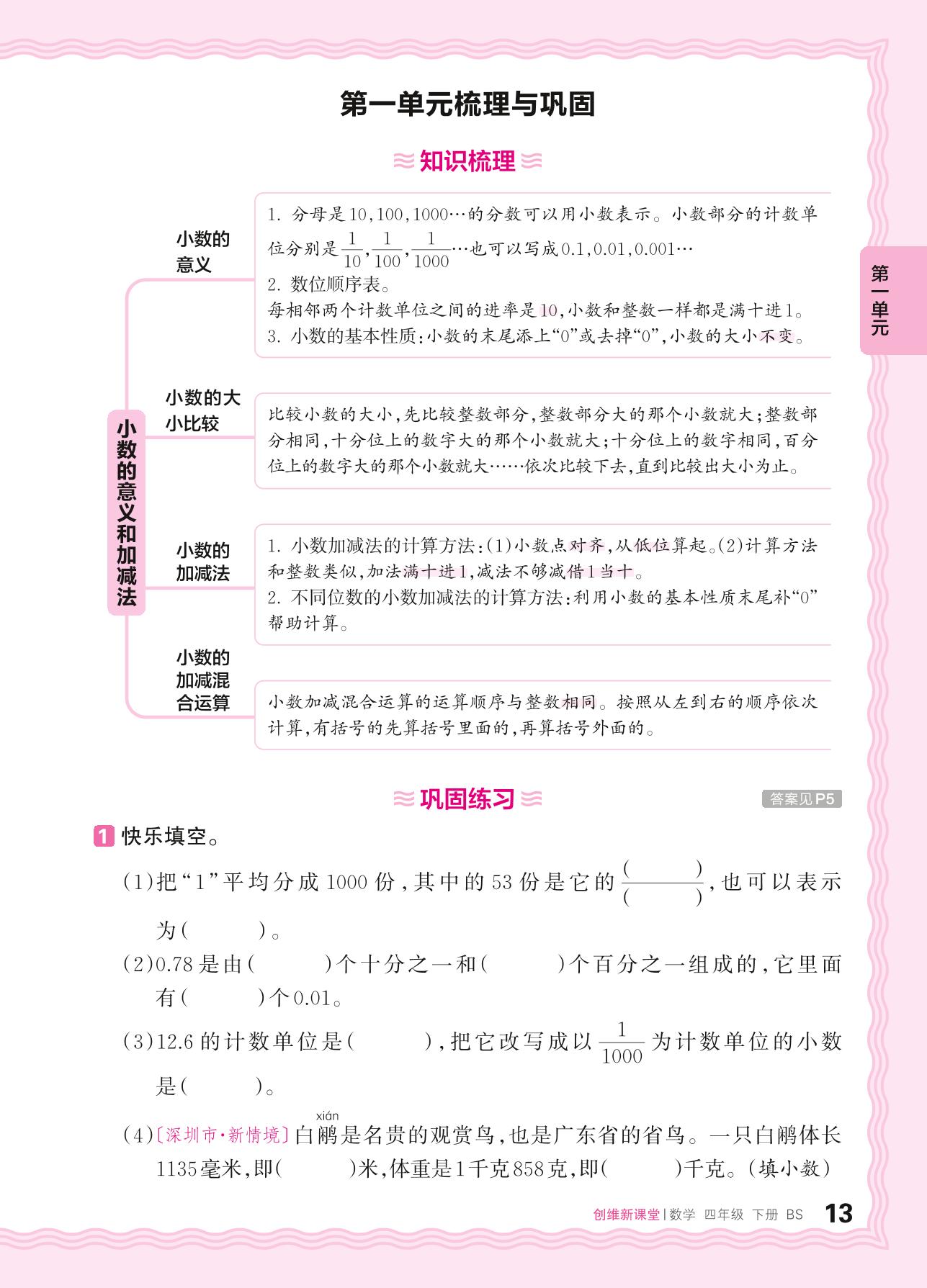 2024春下册四年级数学北师版 第一单元梳理与巩固