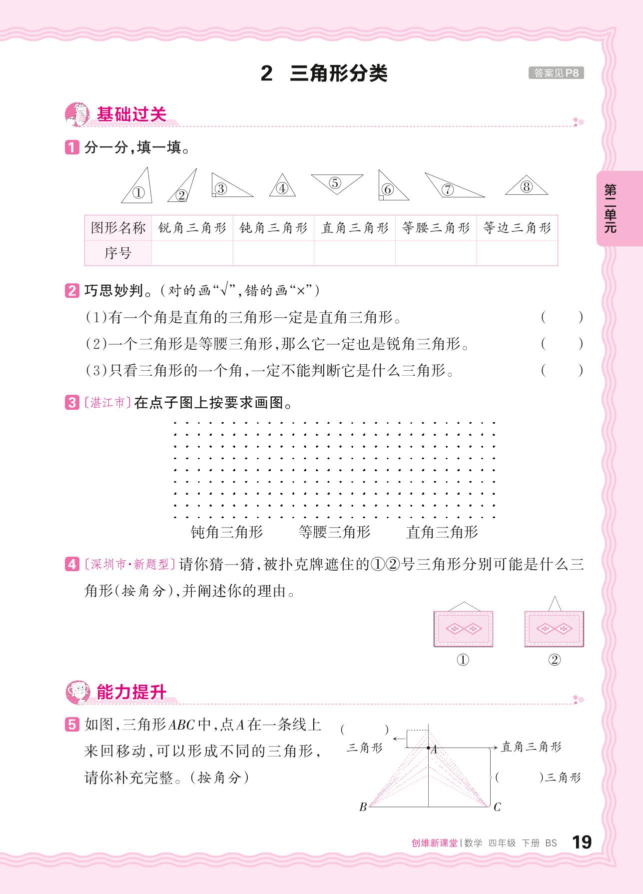 2024春下册四年级数学北师版 第二单元 认识三角形和四边形——2. 三角形分类
