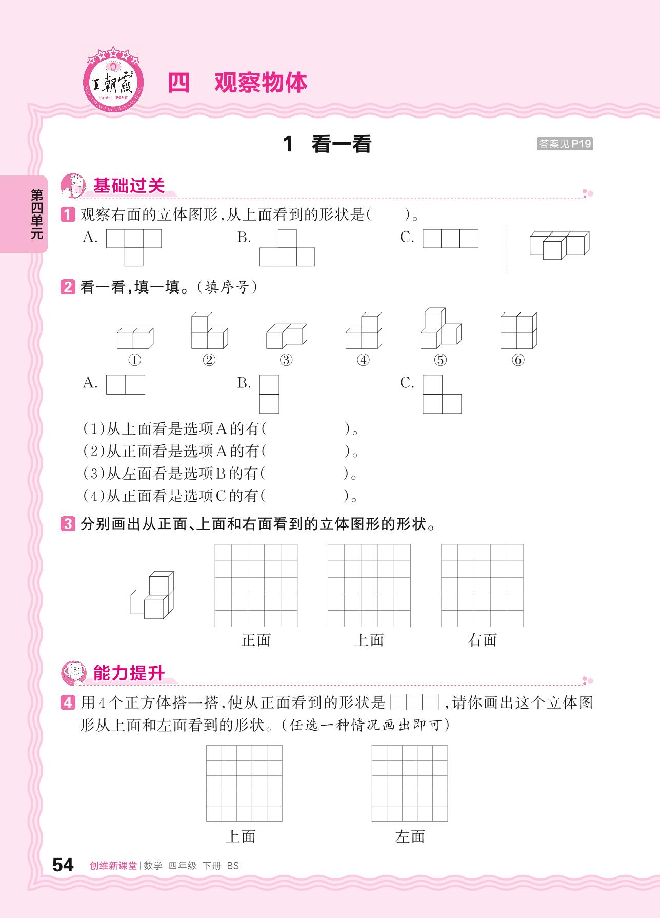 2024春下册四年级数学北师版 第四单元 观察物体——1. 看一看