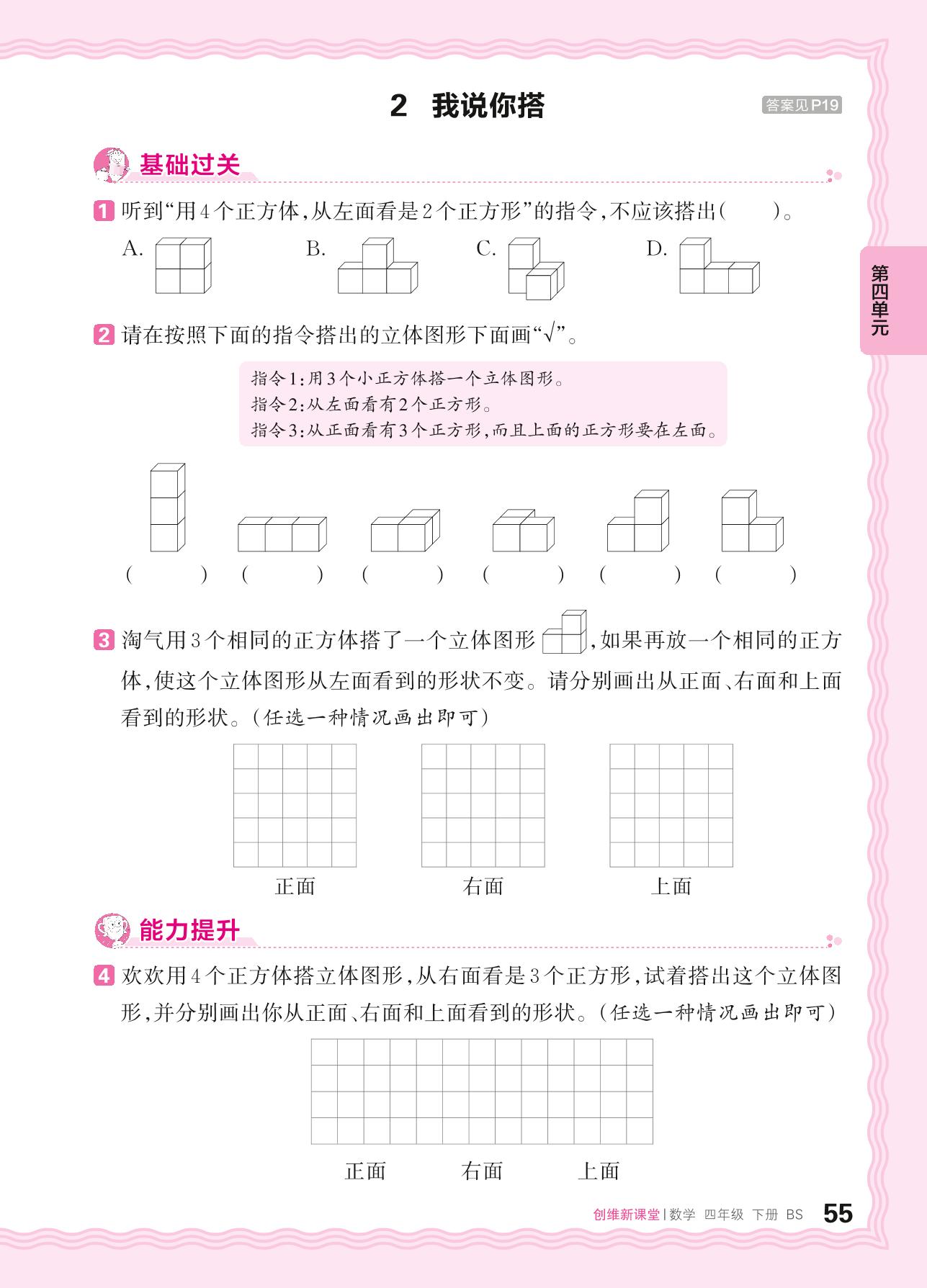 2024春下册四年级数学北师版 第四单元 观察物体——2. 我说你搭