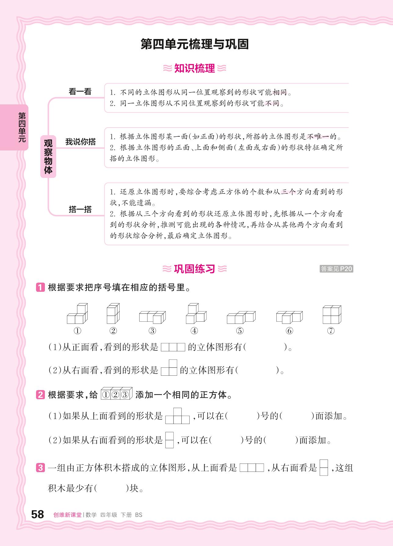 2024春下册四年级数学北师版 第四单元梳理与巩固