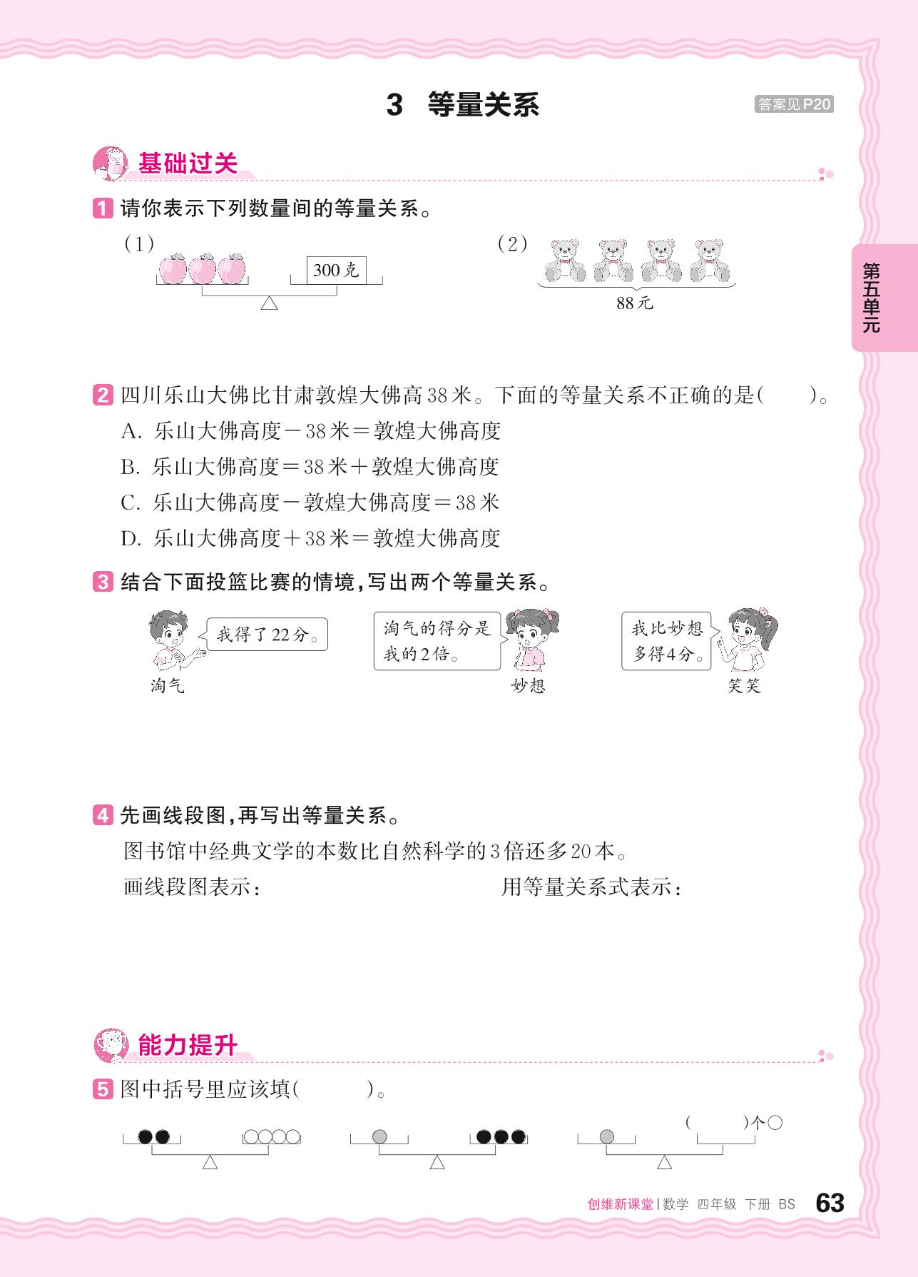 2024春下册四年级数学北师版 第五单元 认识方程——3. 等量关系