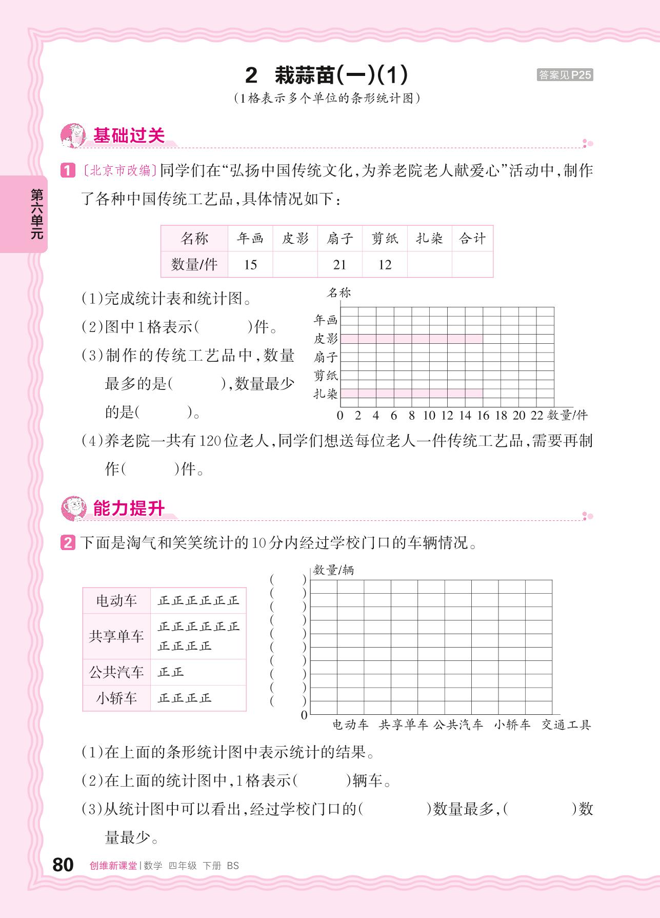 2024春下册四年级数学北师版 第六单元 数据的表示和分析——2. 栽蒜苗(一)(1)