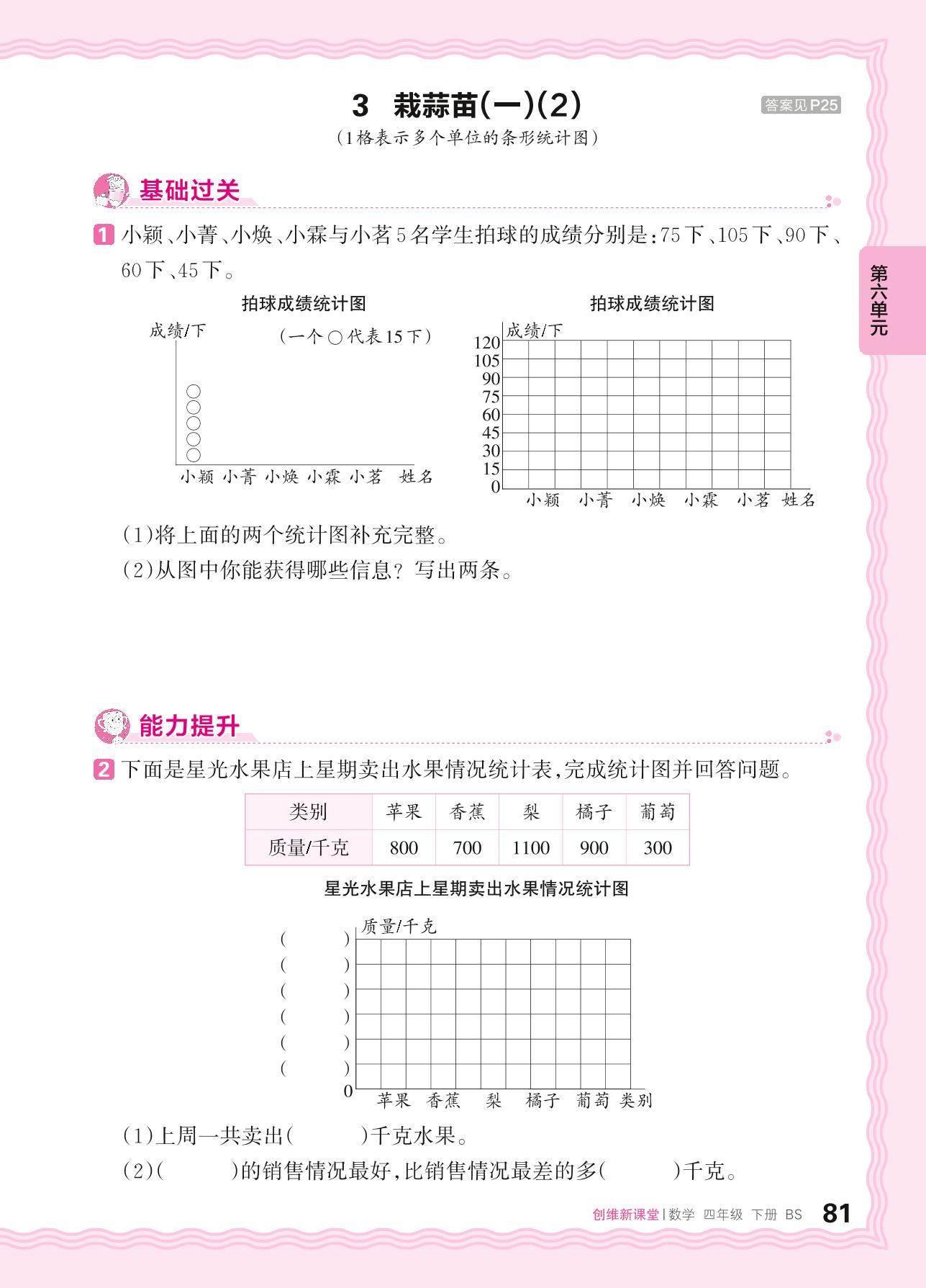 2024春下册四年级数学北师版 第六单元 数据的表示和分析——3. 栽蒜苗(一)(2)