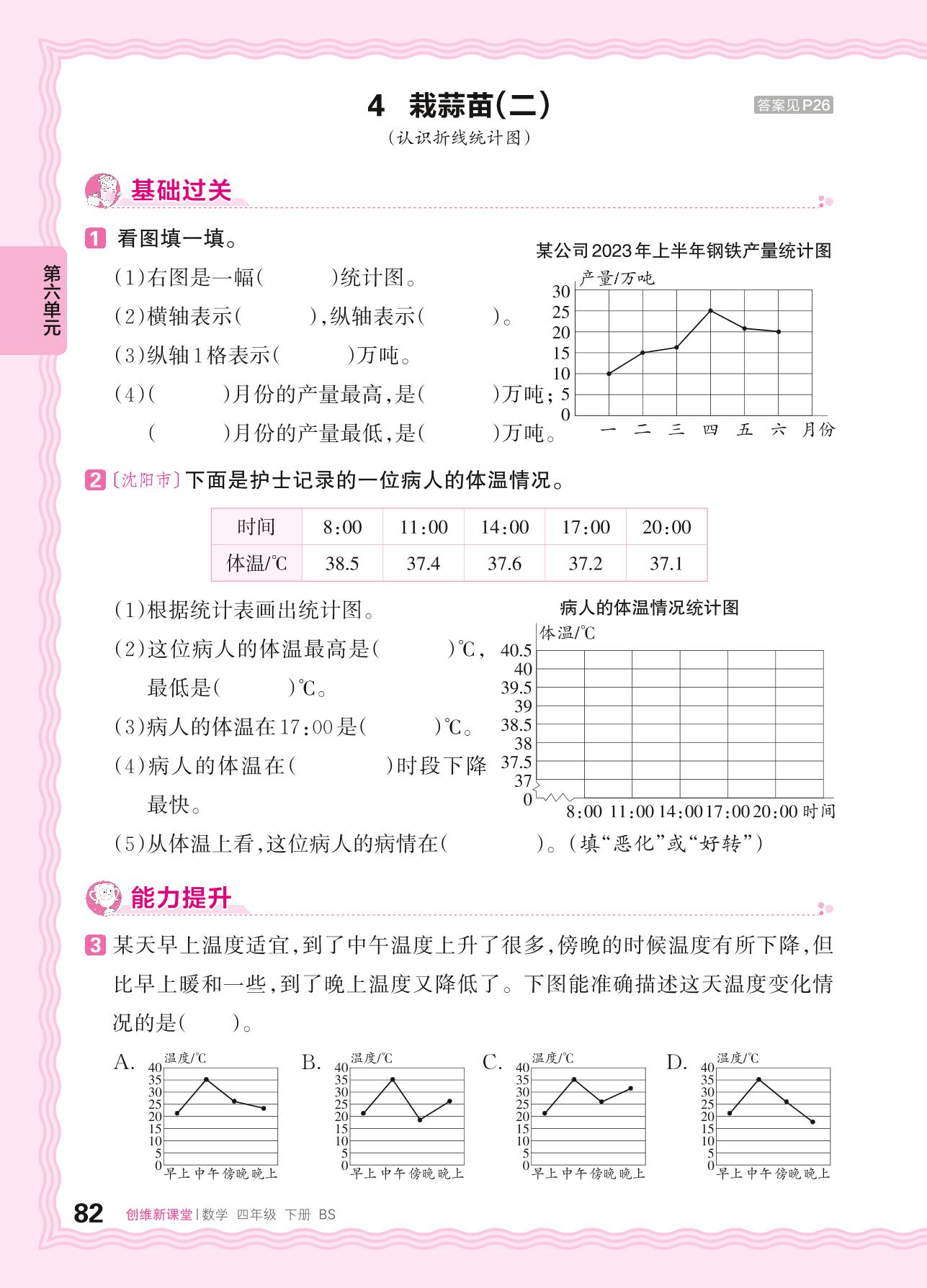 2024春下册四年级数学北师版 第六单元 数据的表示和分析——4. 栽蒜苗(二)