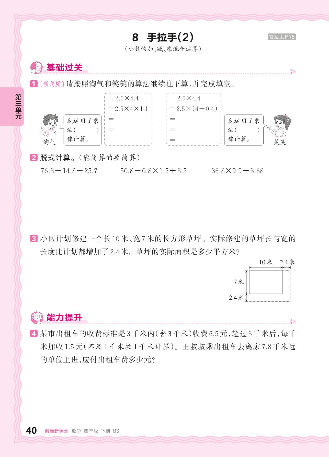 2024春下册四年级数学北师版 第三单元 小数乘法——8. 手拉手(2)