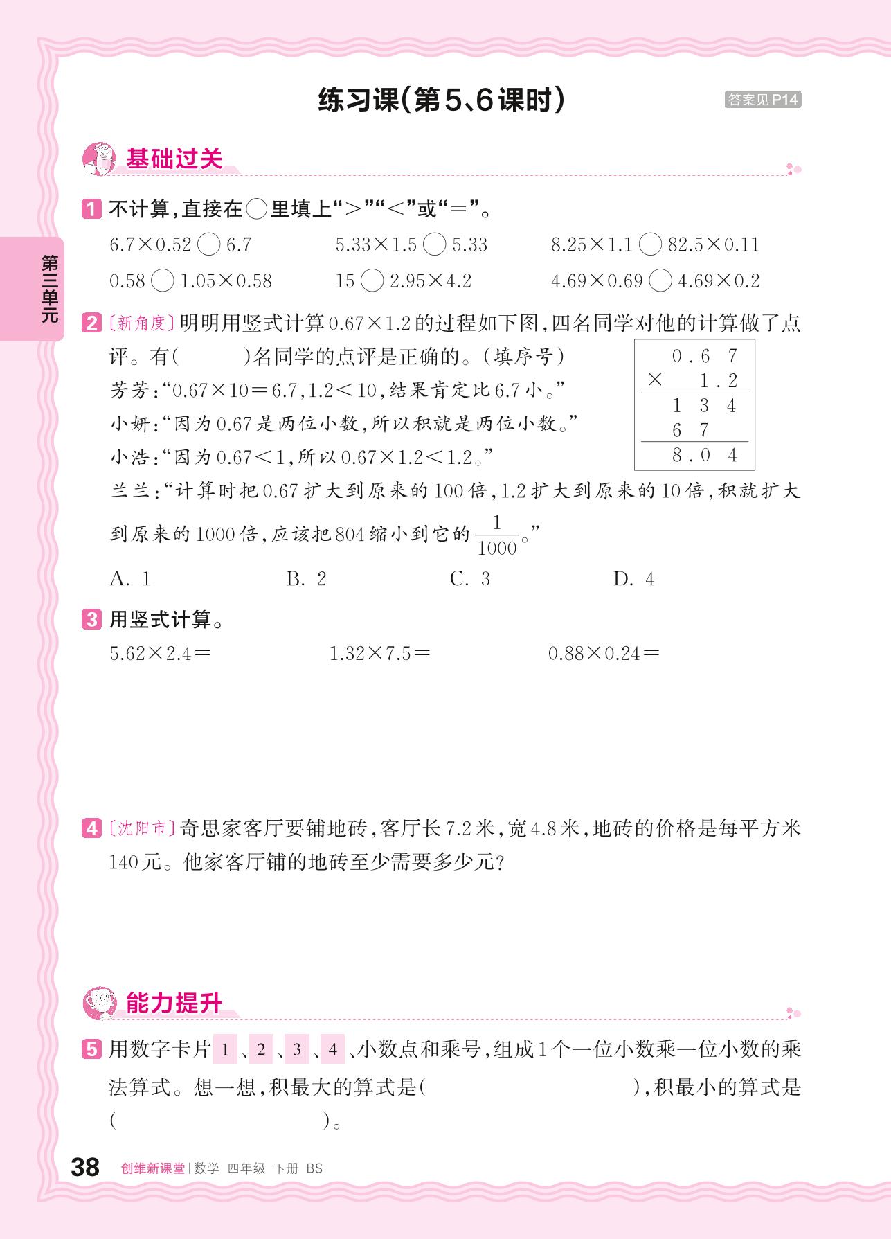 2024春下册四年级数学北师版 第三单元 小数乘法——包装、蚕丝练习课