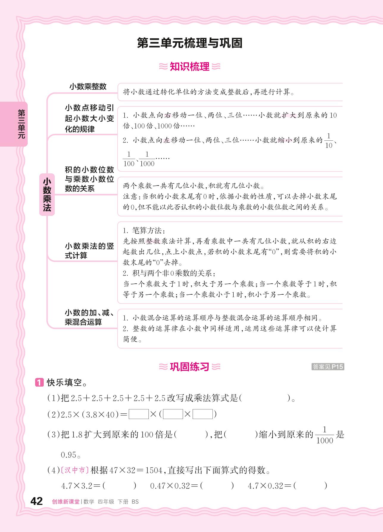 2024春下册四年级数学北师版 第三单元梳理与巩固