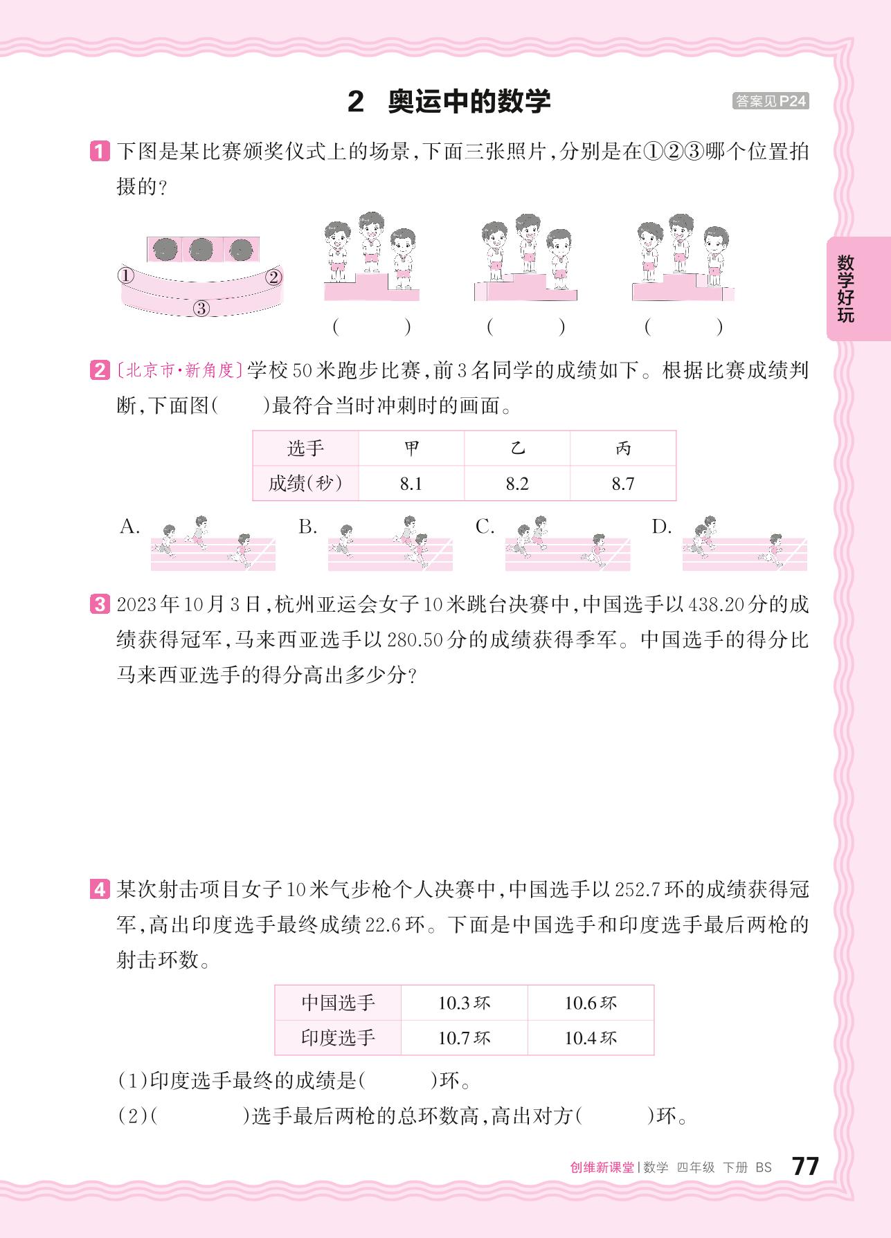 2024春下册四年级数学北师版 数学好玩——2. 奥运中的数学