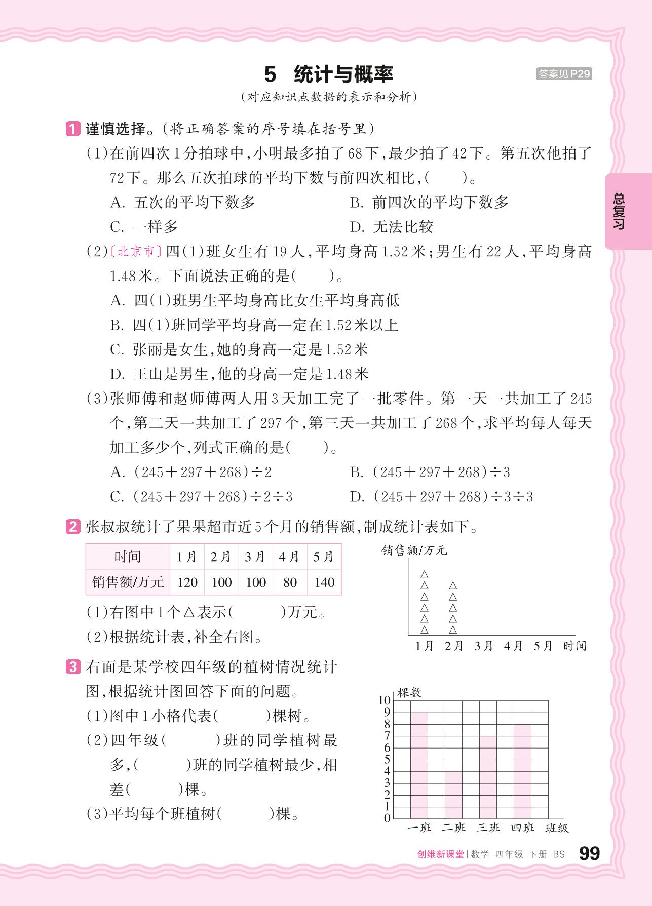 2024春下册四年级数学北师版 总复习——5. 统计与概率