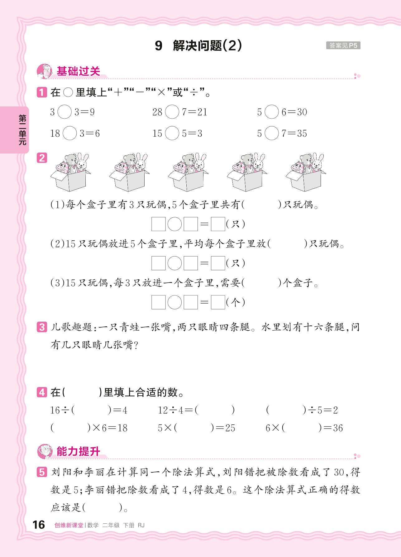2024春下册二年级数学人教版 第二单元 表内除法(一)——9. 解决问题(2)
